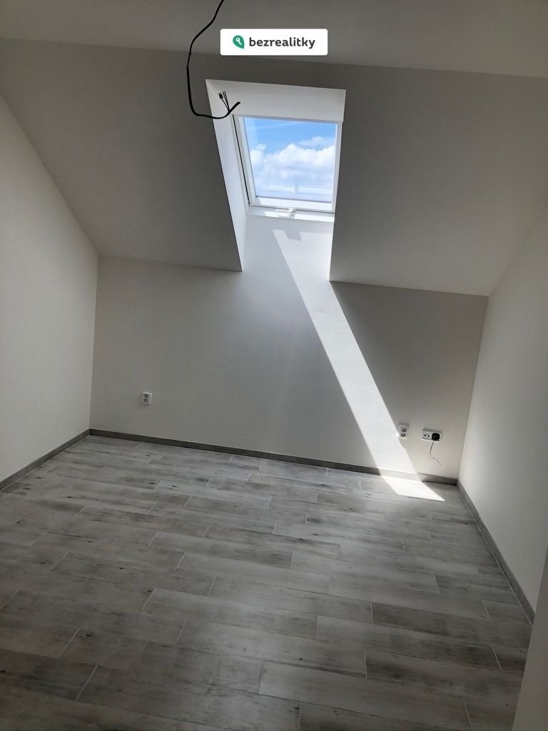 Podkroví – Tři pokoje, prostorná koupelna s toaletou a chodba.