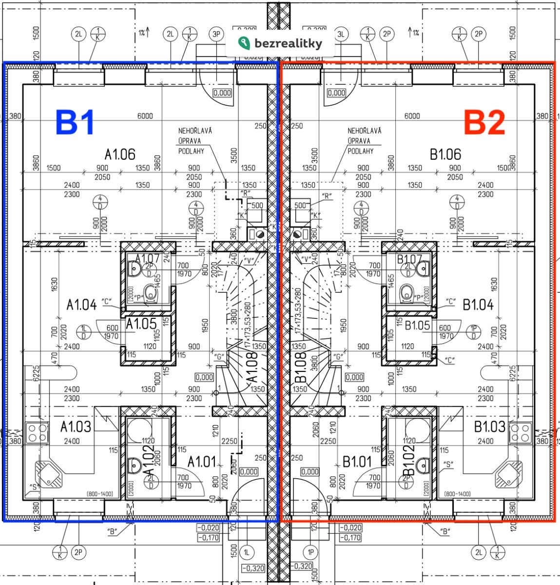 Mezi jednotkami je dvojitá zeď s izolací a strop je přerušen – díky tomu jsou jednotky výborně akusticky oddělené.