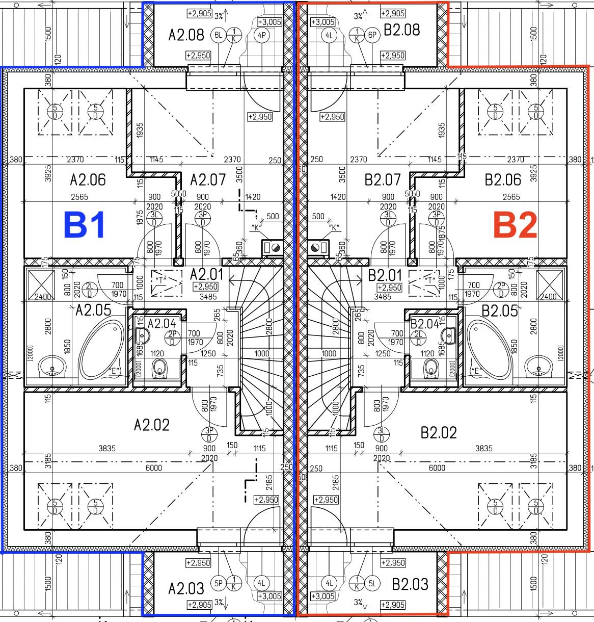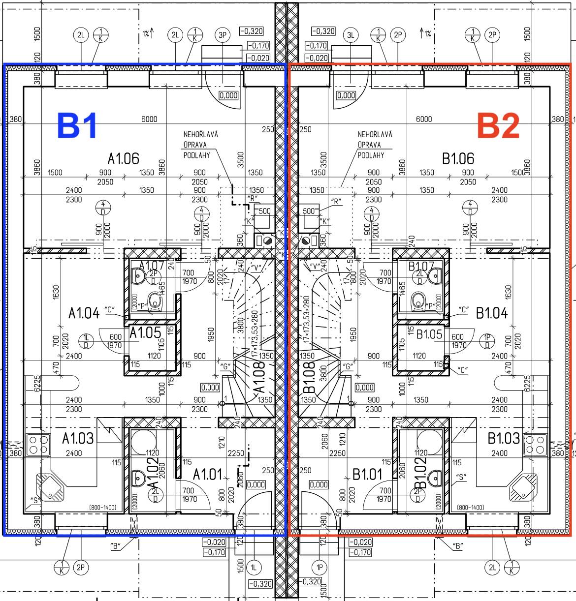 Užitná plocha každé jednotky je 123 m2 a plocha zahrad 380 m2 a 394 m2.