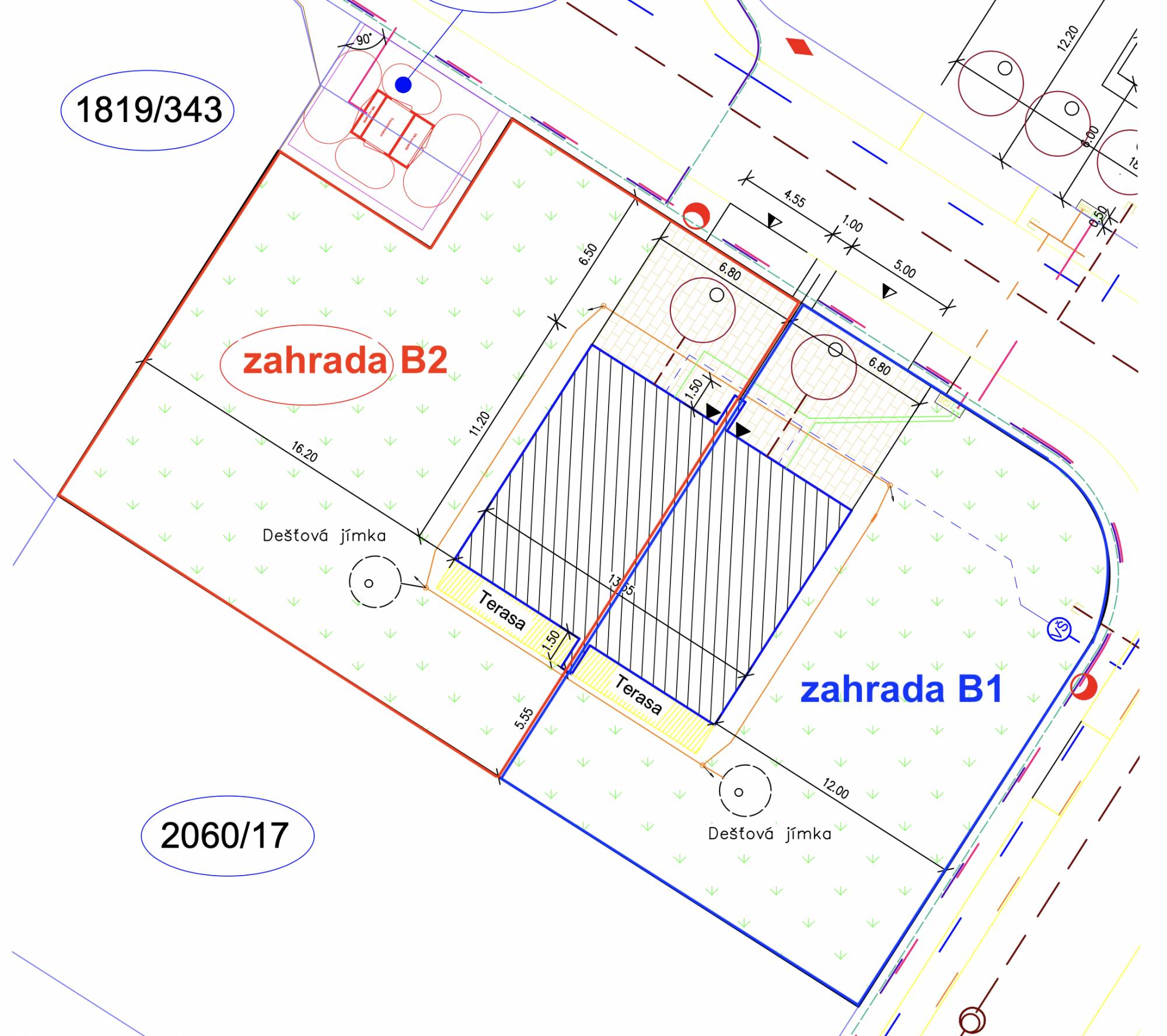 Součástí bytu je výhradní právo na užívání adekvátní části pozemku – zahrady, která je přístupná z obývacího pokoje a dvou parkovacích stání.