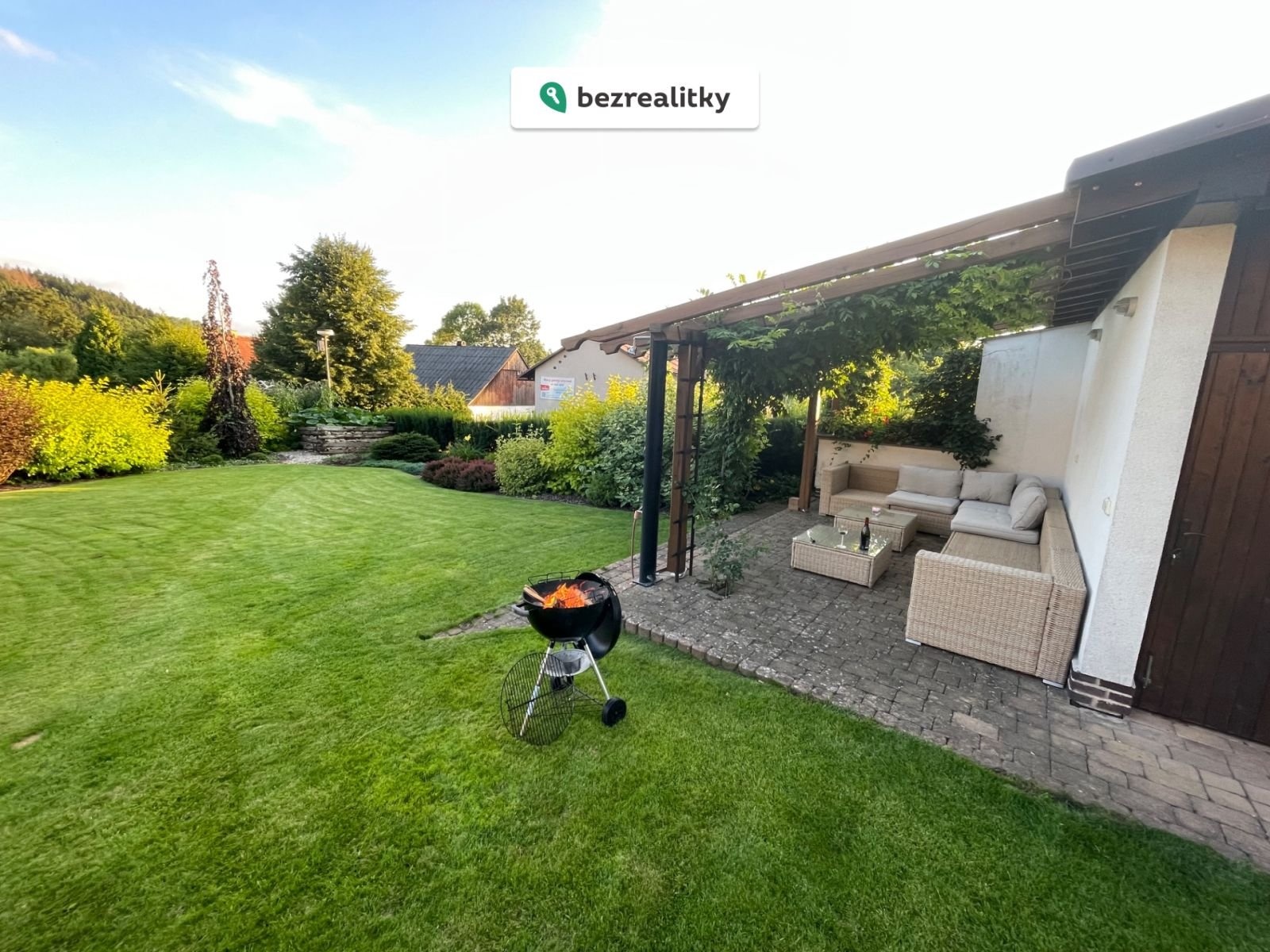 Zahrada je automaticky zavlažovaná. V letních měsících oceníte příjemně zastíněnou pergolu s posezením pro 7 osob, ideální pro rodinné chvíle či setkání s přáteli. K dispozici je také sklad zahradního náčiní.