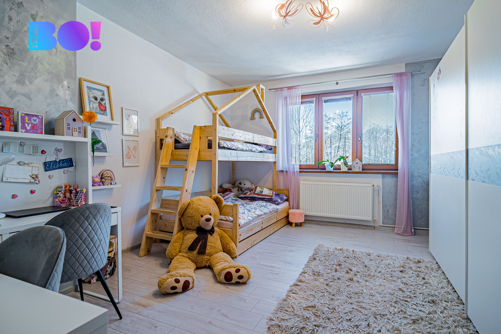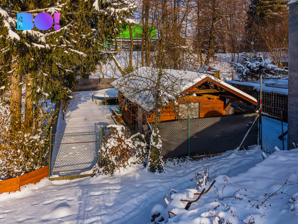 Součástí bytu je velká lodžie orientovaná do klidného prostředí a také oplocená zahrada s dřevěnou pergolou, ideální pro posezení, grilování nebo relax po náročném dni. Pokud by vám vlastní zahrada nestačila, oceníte i rozlehlou louku přímo za domem, která nabízí další prostor pro volnočasové aktivity nebo hry dětí.