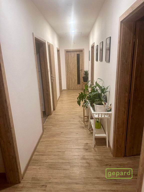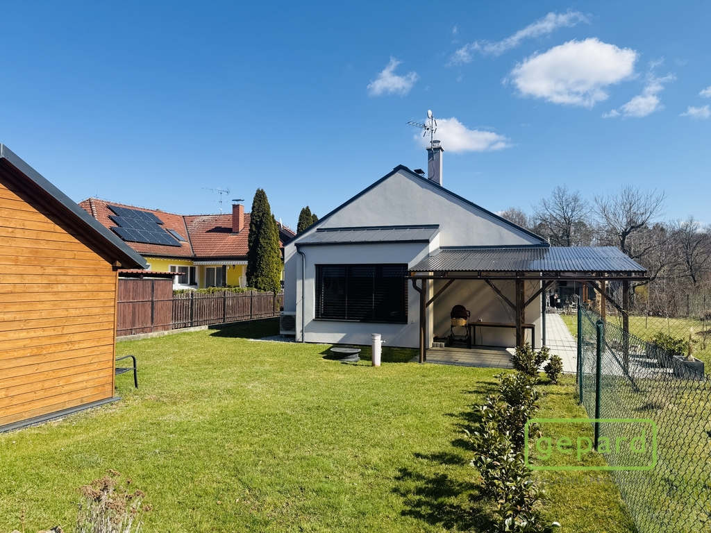 Rodinný dům má spousty superlativ, je skvěle dispozičně řešený a velkým benefitem je osvětlená venkovní terasa přístupná z obývacího pokoje s výhledem do okolní udržované zahrady se vzrostlými ovocnými stromy a najdeme zde i jedlé keře, živý plot s arónií, muchovníku a mnoho dalšího. Součástí zahrady je dřevěný zahradní domek s plechovou krytinou na ploše 4x5 m2. Kolem domu je zámková dlažba, kde lze zaparkovat až 5 osobních automobilů. Dům je nekuřácký a preferujeme dlouhodobý pronájem bez domácích mazlíčků.