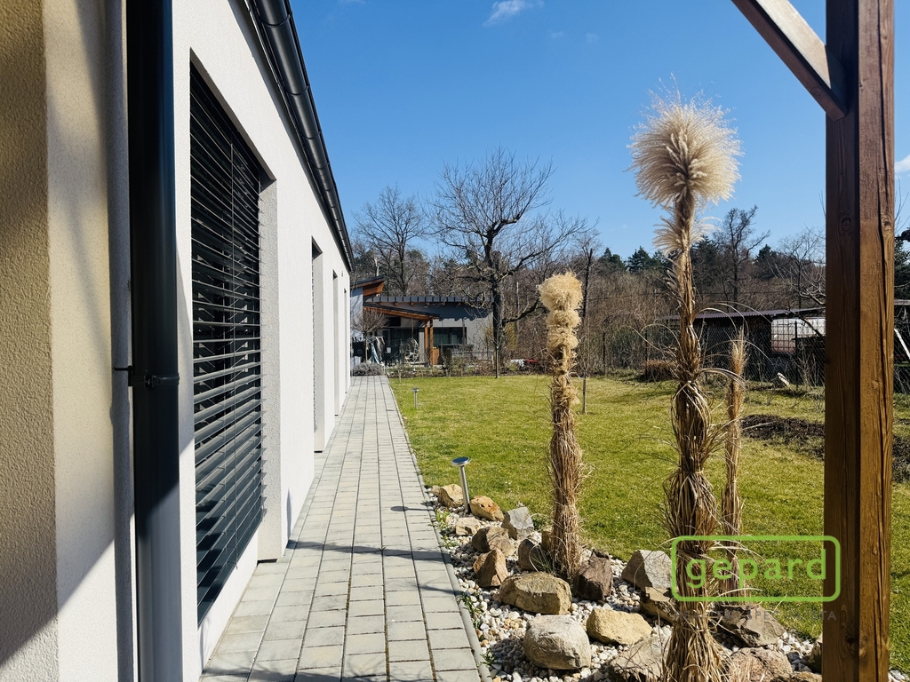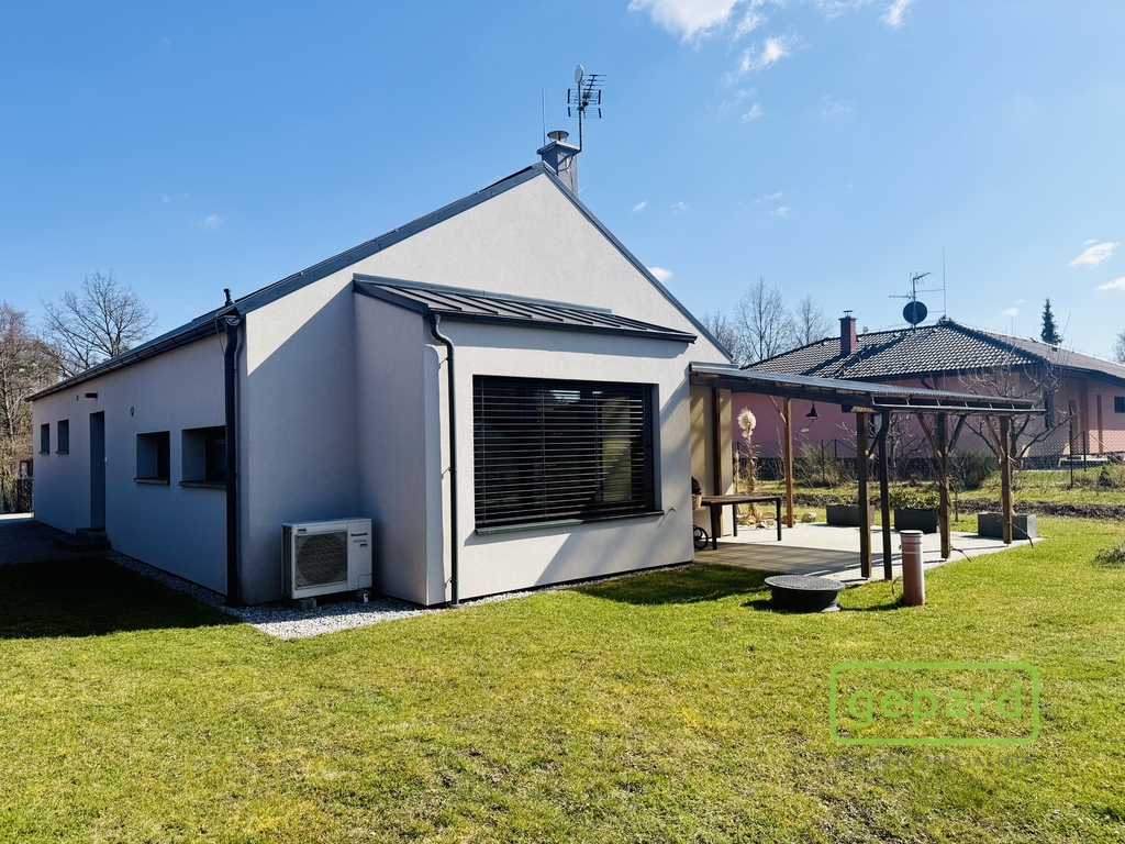 Představujeme na pronájem tuto novostavbu – částečně zařízený bungalov s dispozicí 4+kk s užitnou plochou 150 m2, který je situován v klidné části městečka Bystřice, v ulici K Zájezdku.