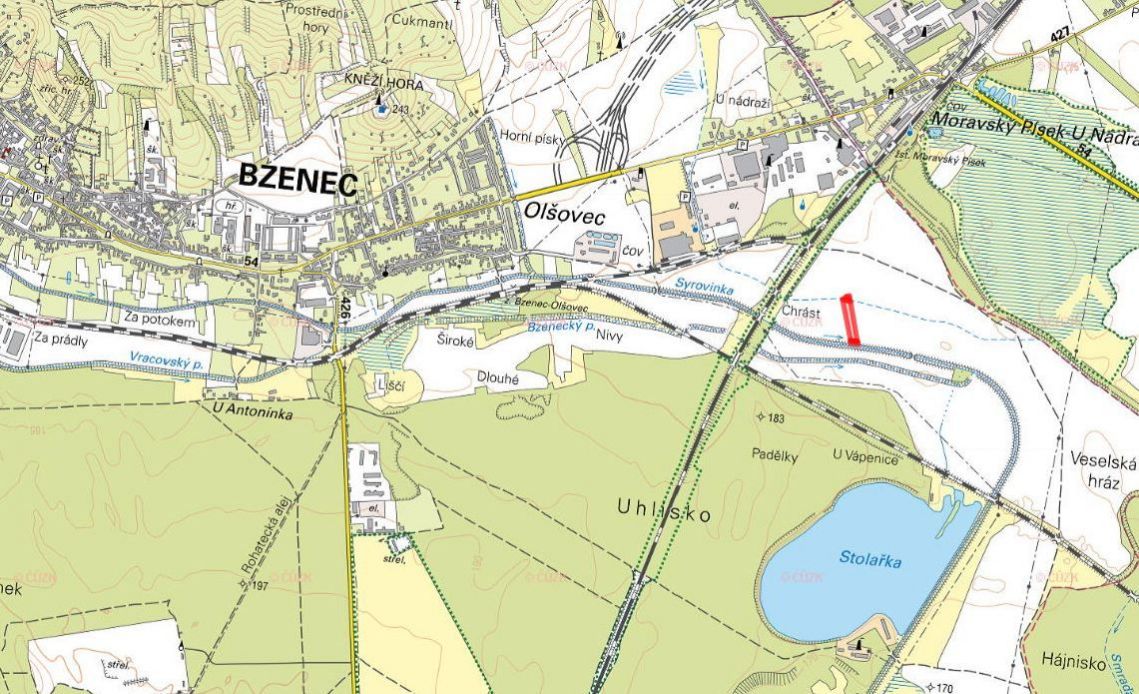 V k. ú. Bzenec (LV 310) se jedná o parcely č. 4984/45, 5151/9, 5153/9, 5155/12, 5156/7 a 5156/20 s celkovou výměrou 5 480 m. Tyto pozemky zahrnují ornou půdu, vodní plochu a trvalý travní porost.