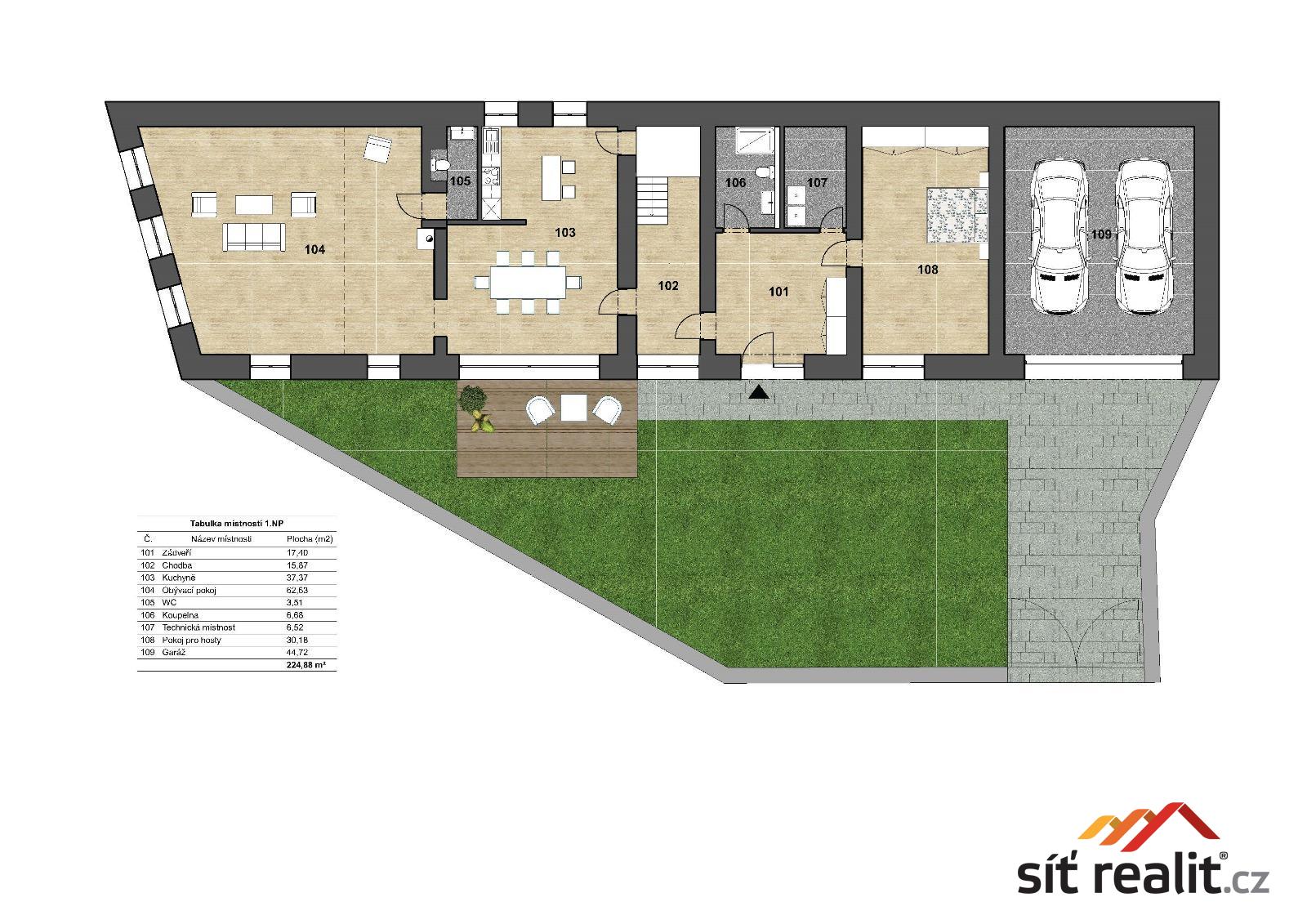 Rádi bychom Vám exklusivně nabídli prodej výjimečného rodinného domu v obci Čakov u Benešova. Aktuálně prochází kompletní rekonstrukcí, včetně dispozičního a technologického řešení do nejmodernéjších standardů. Dům je opravdu velkoryse pojatý, pro náročného klienta či ideálně taktéž jako vícegenerační. Případně velkou rodinu. Ve standardu je dům prodávám ve variantě shell and core a zařízení dle požadavků nového majitele je možné dokončit ve spolupráci se stavební firmou. V rámci kompletních rekonstrukčních prací bylo realizováno: kompletní výměna krovu a střechy, tepelné zaizolování stěn, střechy PUR pěnou, fasádu dle standardů pro historické objekty, nová dřevěná okna s izolačními trojskly, odvětrání podlah v přízemí, podlahové vytápění se zdrojem tepla a teplé vody prostřednictvím úsporného tepelného čerpadla, napojení na obecní vodovod a kanalizaci, štukové omítky jako podklad pro vybrané povrchové úpravy. Provedeny budou nátěry vnitřních dřevěných konstrukcí, schodiště v betonu, oplocení pozemku, vjezdová brána na pozemek. Součástí domu a nabídkové ceny je i prostorná garáž pro 2 vozy. Z dalších nadstandarů můžeme zmínit osazení fotovoltaických panelů, včetně přípravy na bateriové úložiště, a nabíjení el. vozu v garáži. Objekt je podsklepen. Čakov je malebná vesnička sousedící se spádovou obcí Ostředek, kde je kompletní občanská vybavenost a přímé spojení do Prahy autobusem PID. Do centra Prahy se dostanete autem, po dálnici D1, přibližně za 30 minut, na nákupy do Průhonic za 15 minut, Benešov je vzdálen cca. 20 minut cesty autem. Rozhodně doporučuji osobní prohlídku, kde budete moci naplno navnímat jedinečnost daného domu, který zajisté má své Genius loci. Pro více informací prosím kontaktujte makléře. Nemovitost je možné financovat hypotékou. Hypotéku Vám kompletně zajistíme dle Vašich požadavků a navíc získáte speciální podmínky i sazby u bank. Ev.č. 241106001.
