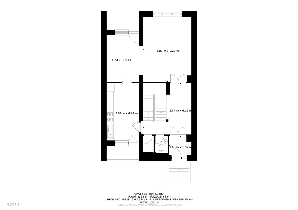 Přízemí: světlý obývací pokoj s jídelním koutem, kuchyně s novou moderní linkou (vestavná myčka a sporák), předsíň, prostorná chodba, samostatná toaleta, spíž a dva balkony
