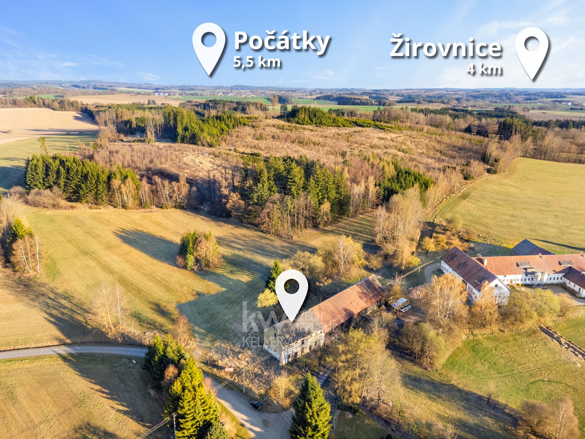 Lokalita nabízí klidné zázemí s dobrou dostupností do okolních měst – v dojezdové vzdálenosti jsou například Pelhřimov, Počátky, Žirovnice, Kamenice nad Lipou, Jihlava či Jindřichův Hradec.