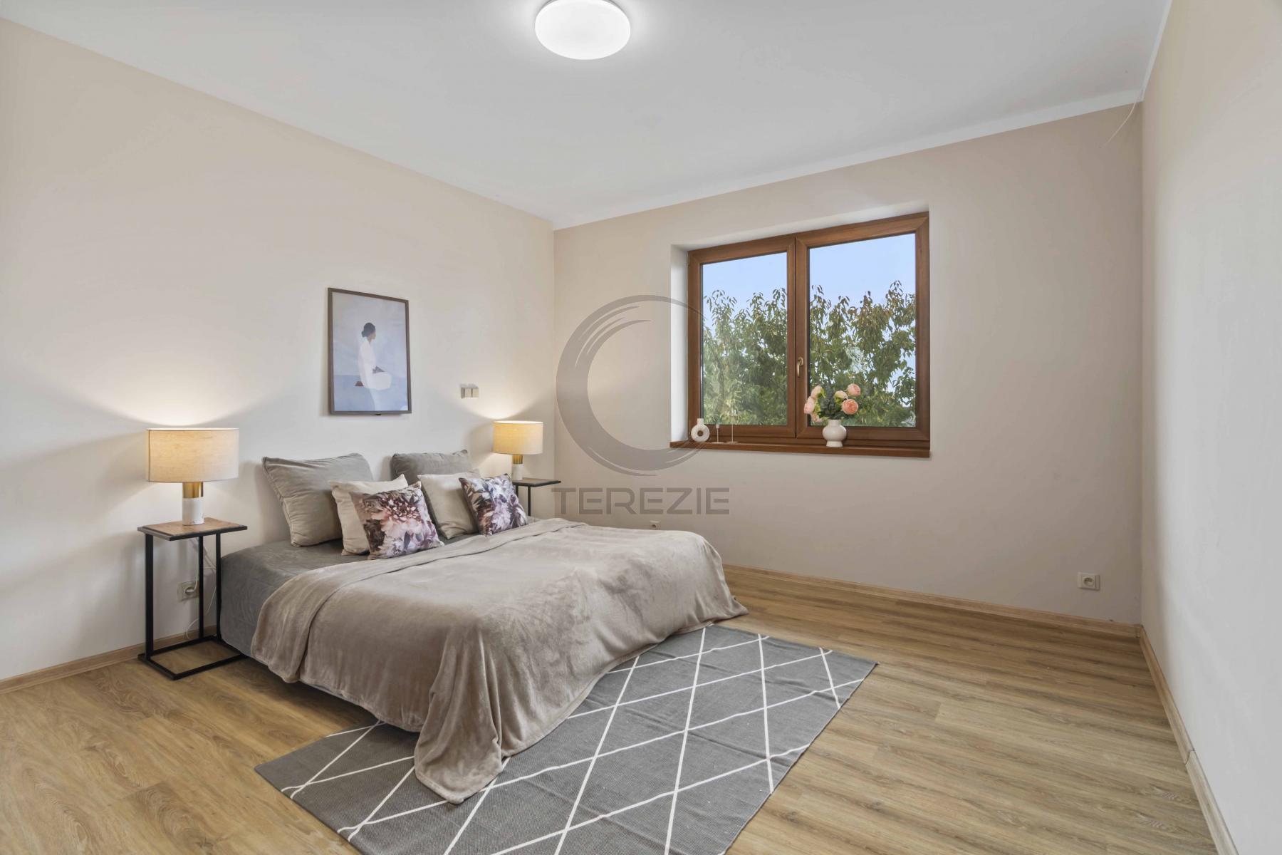 V přízemí domu se nachází obývací pokoj s přípravou na krb, prostor pro kuchyňský kout se vstupem na terasu, 3 samostatné ložnice, koupelna, toaleta, technická místnost a šatna s žebříkem do podkroví. V podkroví tohoto domu se nachází další prostor o výměře cca 100 m2, který může sloužit jako ateliér/herna/kancelář.