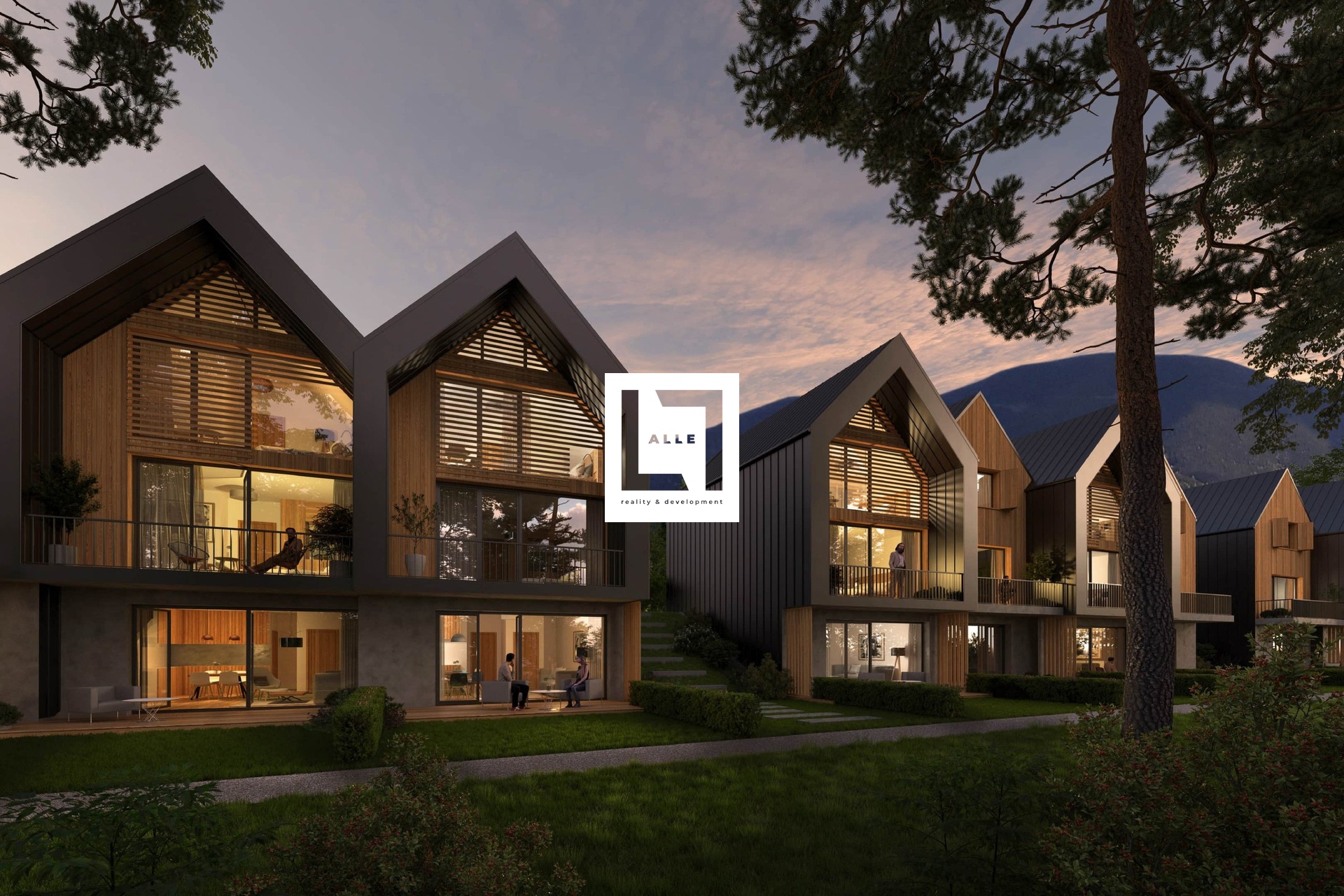 Každý dům o podlahové ploše 134 m² je navržen s důrazem na komfortní bydlení i rekreaci a disponuje vlastní předzahrádkou cca 25 m2 a vyhrazeným parkovacím stáním. Součástí projektu je také společný pozemek zahrady, lesa a přírodní splav vhodný ke koupání.