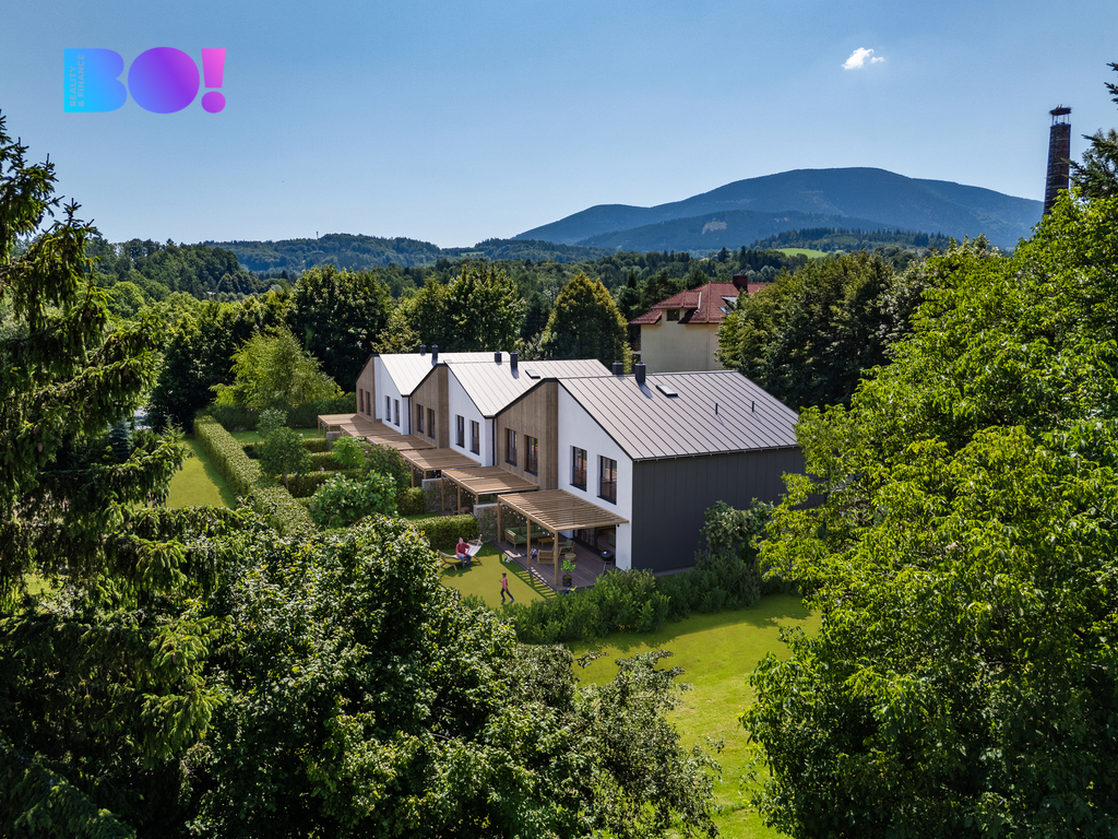 BO!reality Vám exkluzivně nabízí novostavbu řadového domu č. 3 v projektu Villas Čeladná, který propojuje moderní architekturu, energeticky úsporné standardy a jedinečnou atmosféru Beskyd.