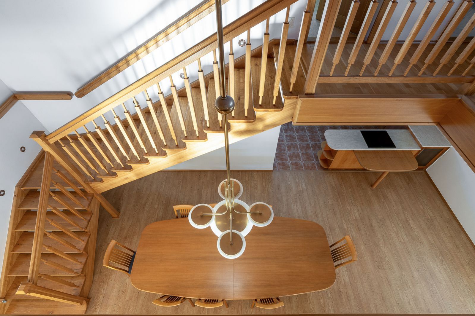 Dominantou domu je reprezentativně řešený obývací pokoj s krbem, propojený se zimní zahradou, jídelnou a kuchyní, doplněný galerií se schodištěm. Obytná část navazuje na terasu orientovanou do krajiny. Dispozice zahrnuje 7 samostatných ložnic, což umožňuje pohodlné rodinné i vícegenerační bydlení nebo kombinaci bydlení a práce z domova. Součástí domu je velkorysá knihovna s pracovnou, tělocvična, šatny, koupelny, rozsáhlé technické zázemí, dvojgaráž s přímým vstupem do domu, dílna, další samostatná garáž a domek pro zahradní techniku.