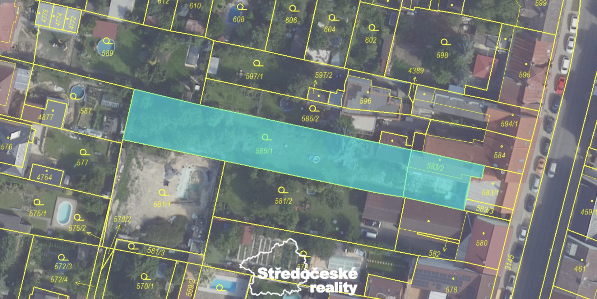 Zadní část pozemku (cca 75 × 13 m) spadá do zóny BI – bydlení v rodinných domech: