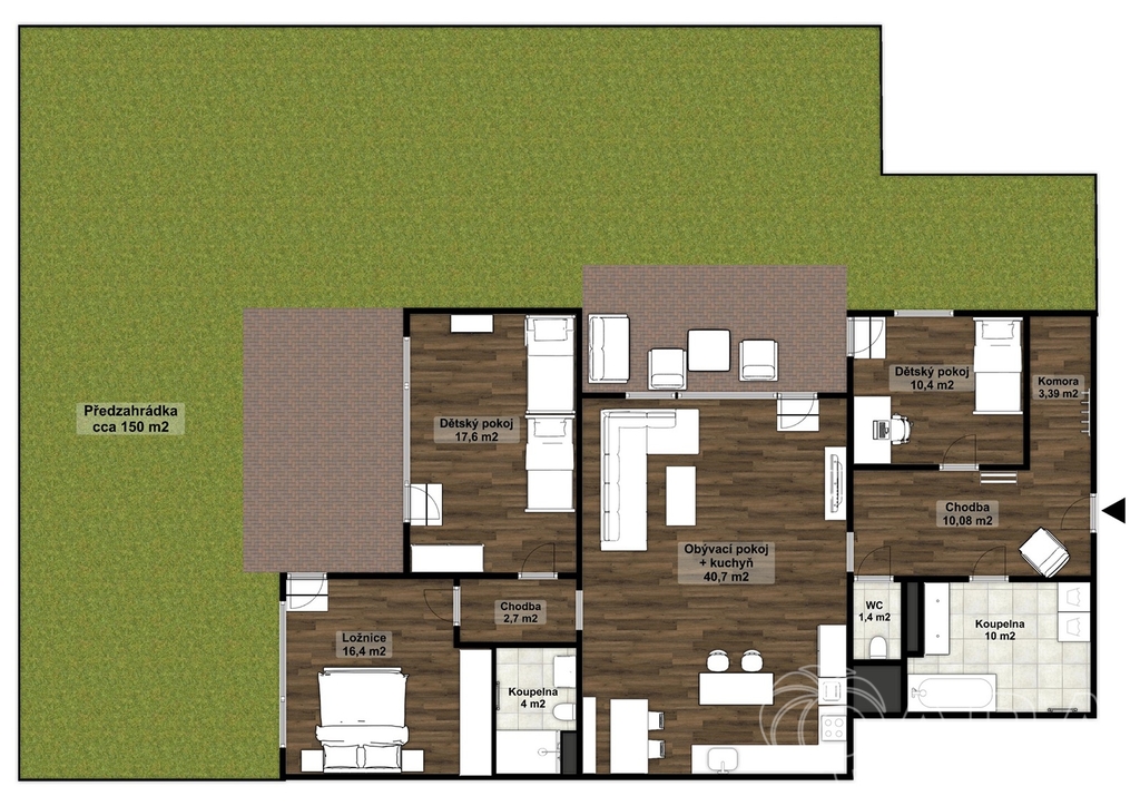 Pronájem bytu 4+kk s dvěma parkovacími stáními a předzahrádkou
