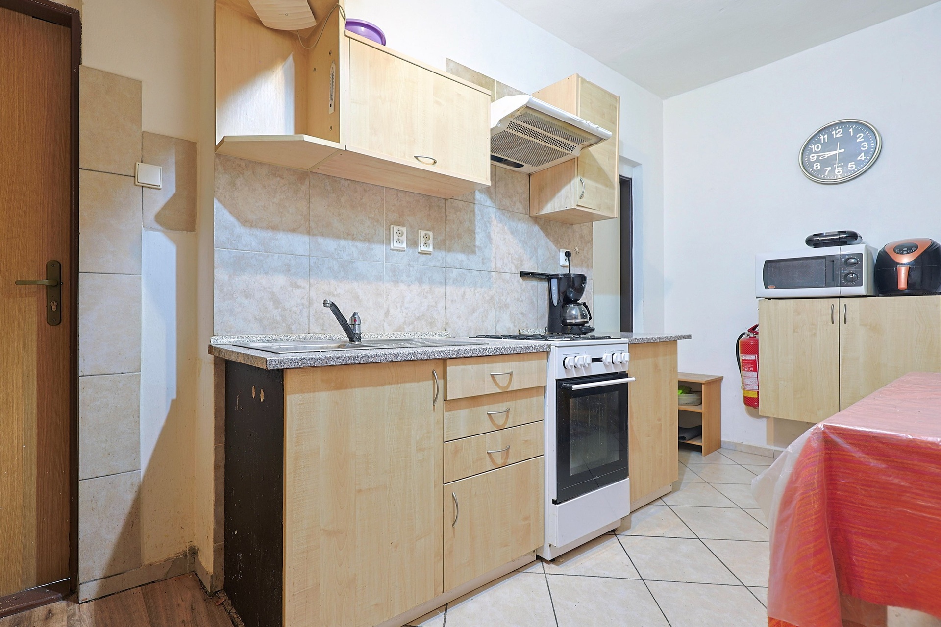 Samostatná jednotka s vlastním vstupem: pokoj 13,86 m², kuchyně 10,73 m², ložnice 9,24 m², sprcha a WC. Pronajatá zvlášť — vhodná pro nájemce, kteří preferují oddělený provoz.