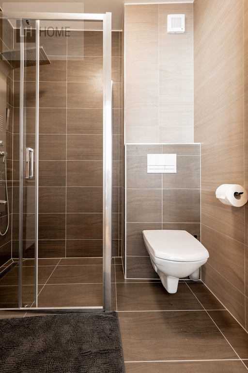 ● kompletně vybavenou koupelnu (sprchový kout, skříňka s umyvadlem, zrcadlo, závěsné WC, topný žebřík)
