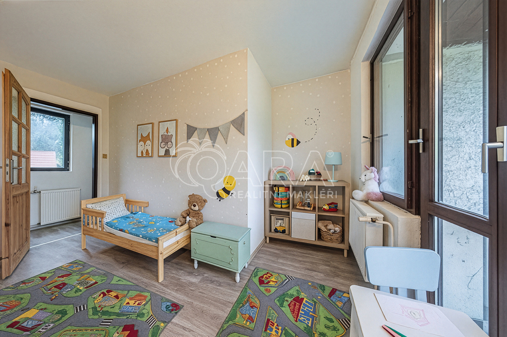 Chata je částečně zařízená – k dispozici je myčka nádobí, mikrovlnná trouba, lednice, odsavač par, pračka a sušička, takže je připravena k okamžitému užívání bez nutnosti dalších investic.