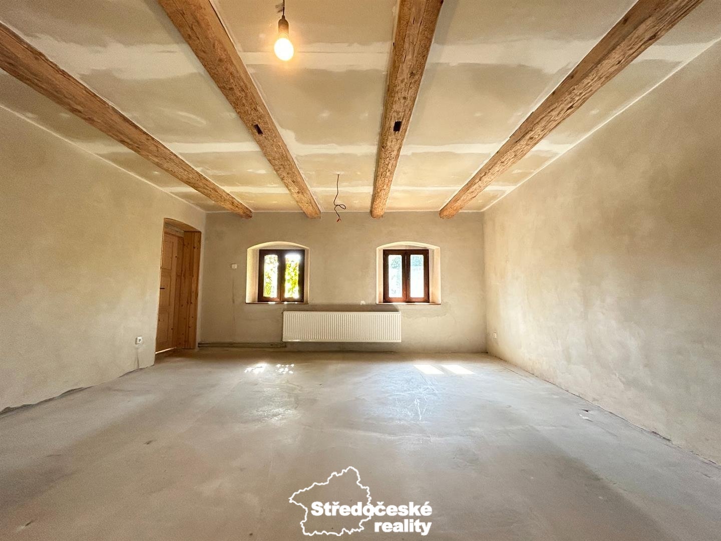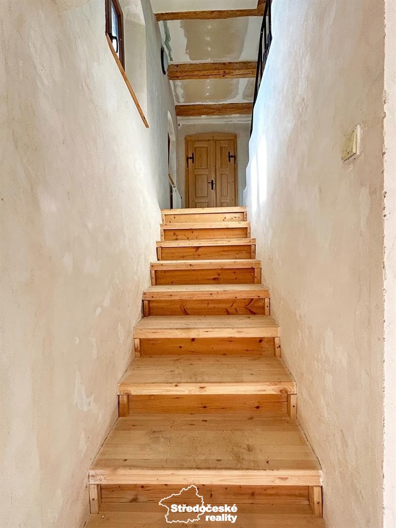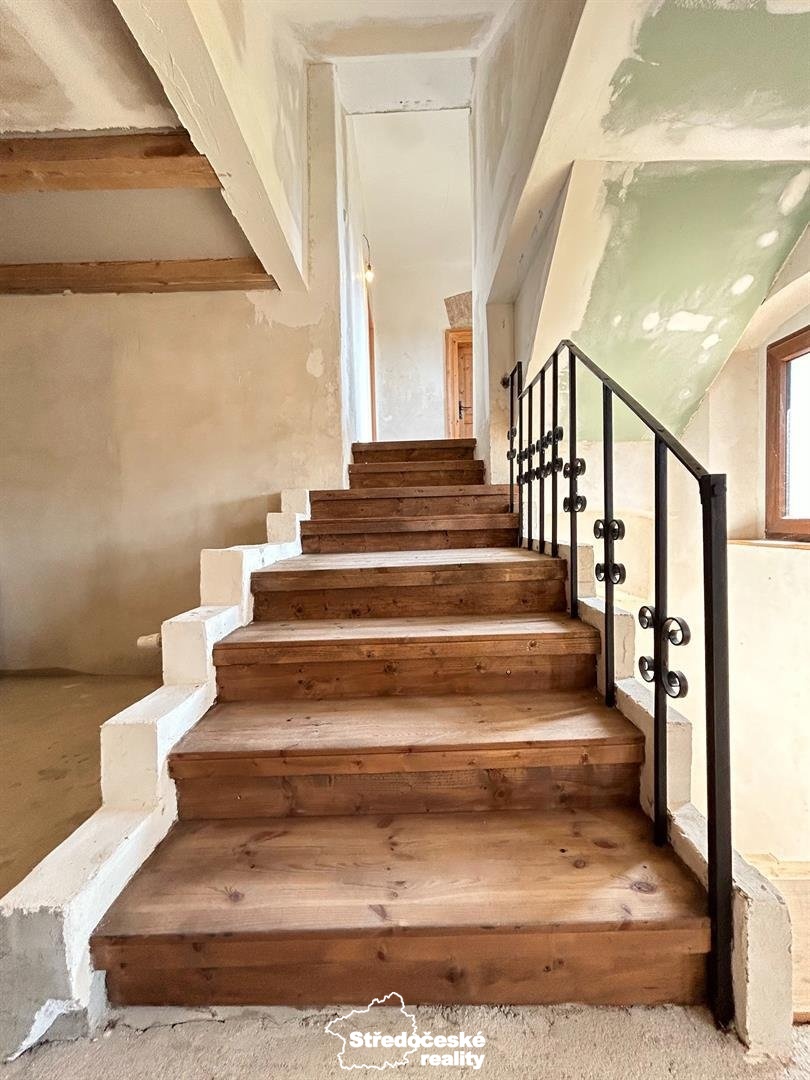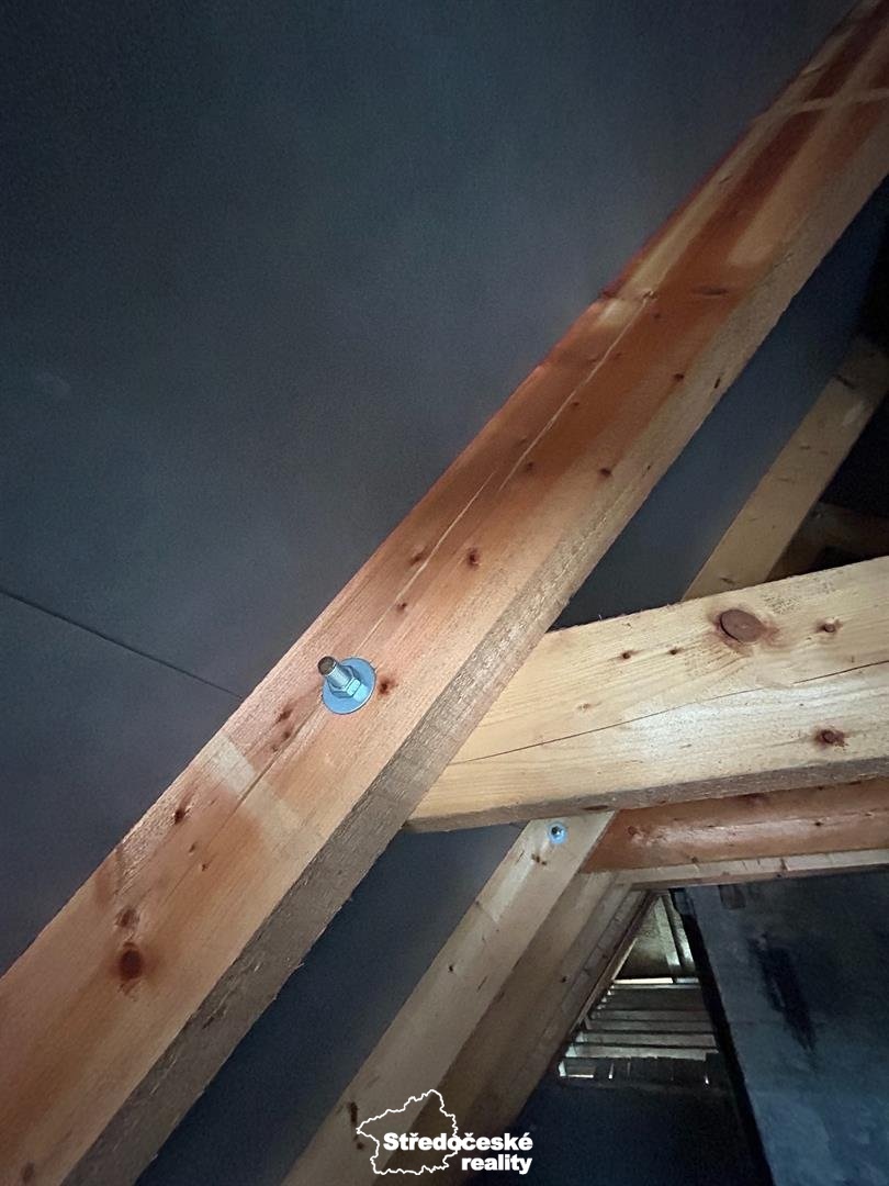 • nové omítky, zateplený strop s přiznanými trámy, sádrokarton, připravené podlahy