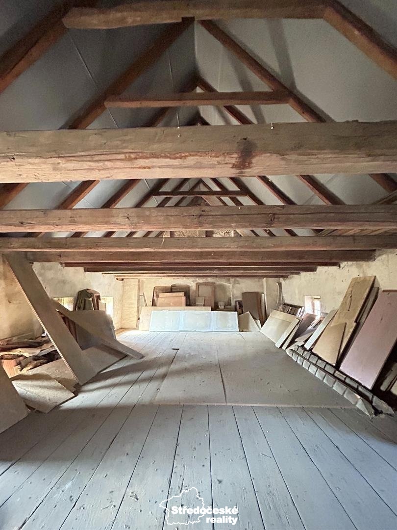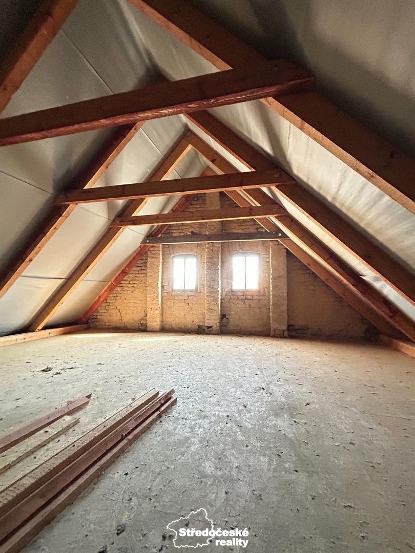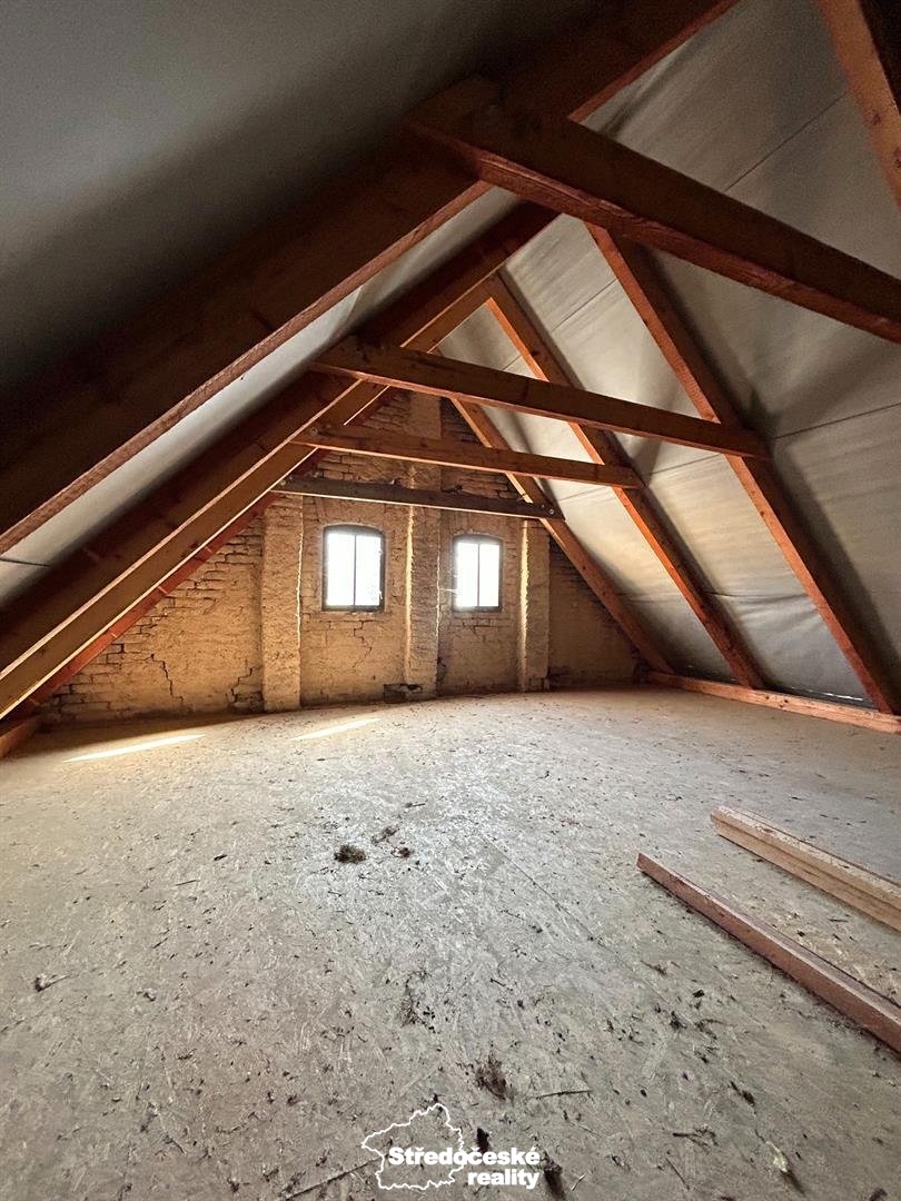 ◦ druhá část: cca 54 m², výška ke hřebeni 3,5 m, dvě štítová okna