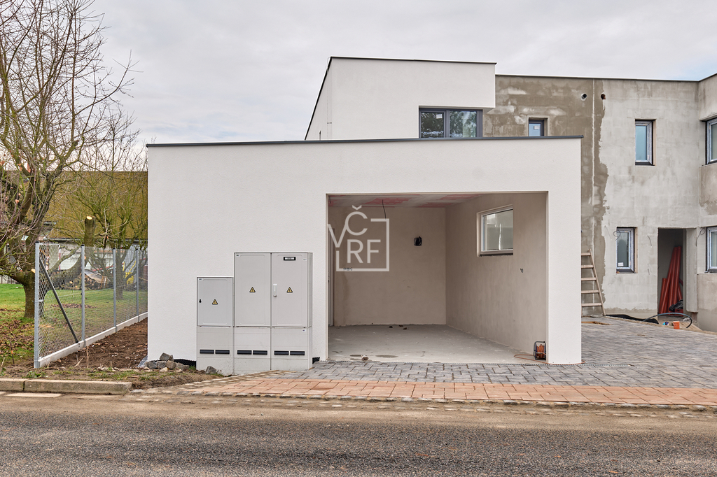 Dům je ve výstavbě, plánované dokončení je do 3 měsíců od zaplacení zálohy. Celková plocha pozemku činí 412 m².