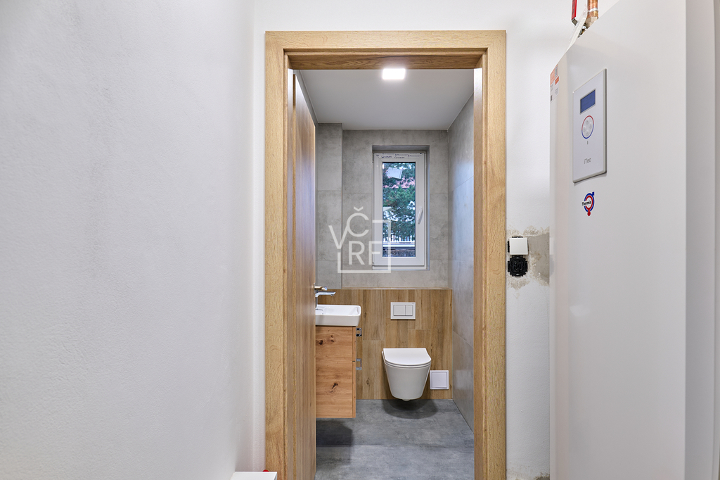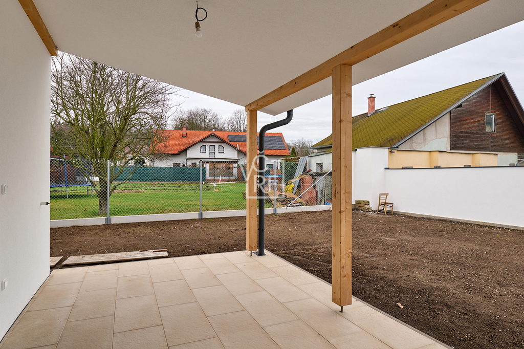 Přípojky: el.230/400V, obecní vodovod, vytápění (tepelné čerpadlo vzduch/voda).