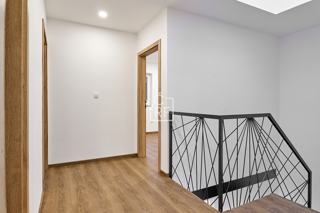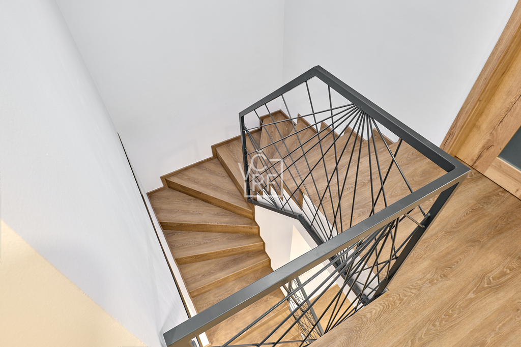 Vnitřní dispozice: 1NP vstup, chodba, kuchyň, jídelna, obývací pokoj se vstupem na terasu, technickou místnost, koupelnu a WC, 2NP tři samostatné ložnice, komora, koupelna s WC.