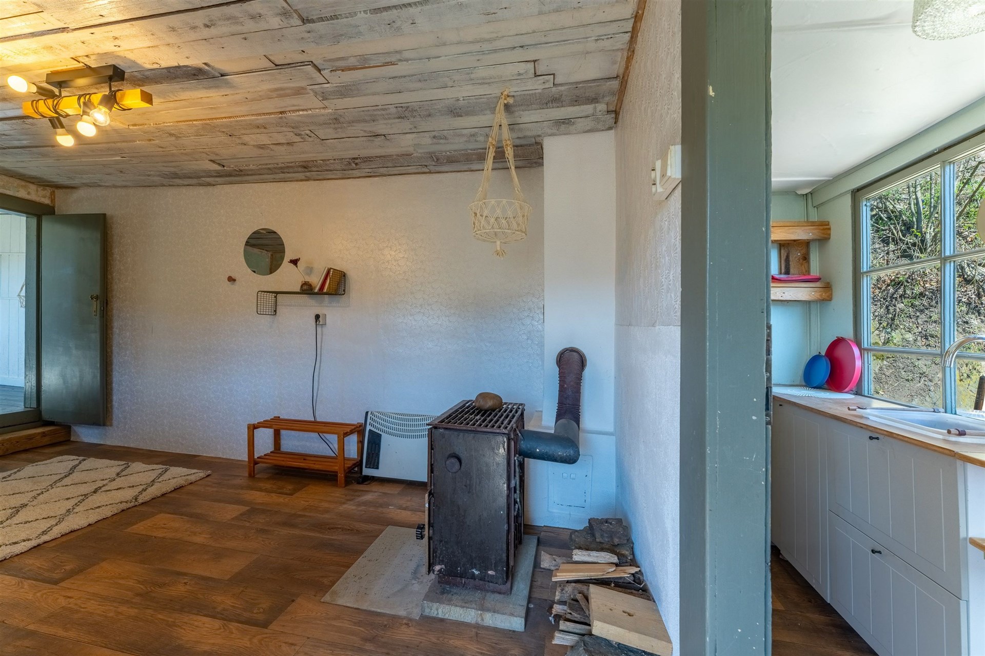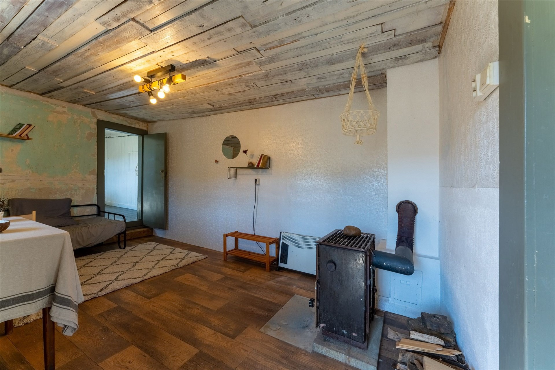 Na pozemku stojí chata (cca 50 m²), která již prošla částečnou rekonstrukcí (nová střecha, elektřina, interiér). Nabízí útulný obývací prostor s kamny, ložnici a prosklenou verandu s terasou. K dispozici je i suterénní sklep (8 m²).