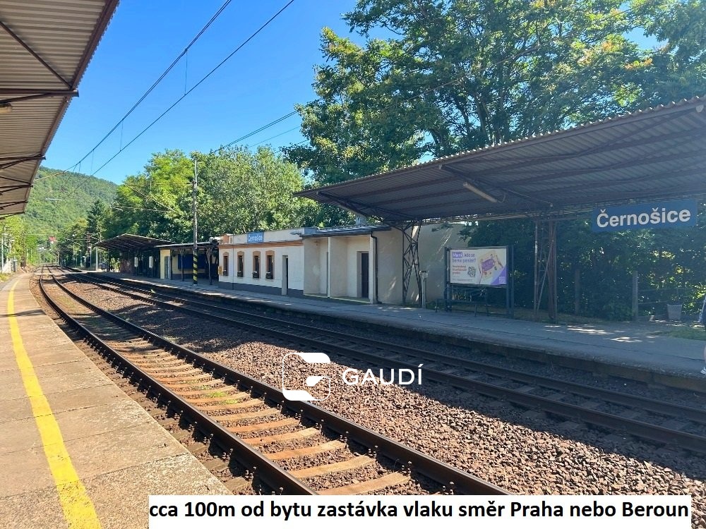 Mezi hlavní klady bytu patří umístění v blízkosti zastávky vlaku směr Praha Smíchov metro B 15, Hlavní nádraží metro C 23min. a zastávky BUS. V okolí se nachází různé obchody, restaurace a služby. Výborné výchozí místo na vycházky do přírody a okolí, do blízkých lesů i k řece Berounce.