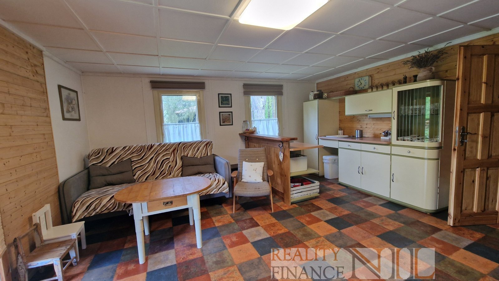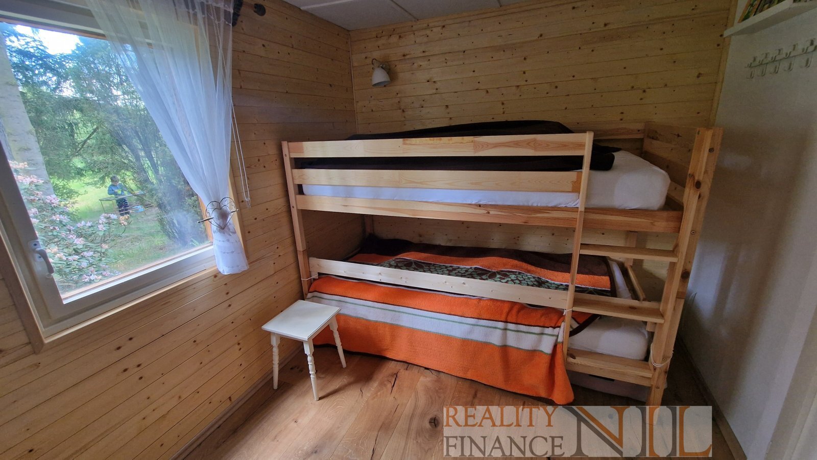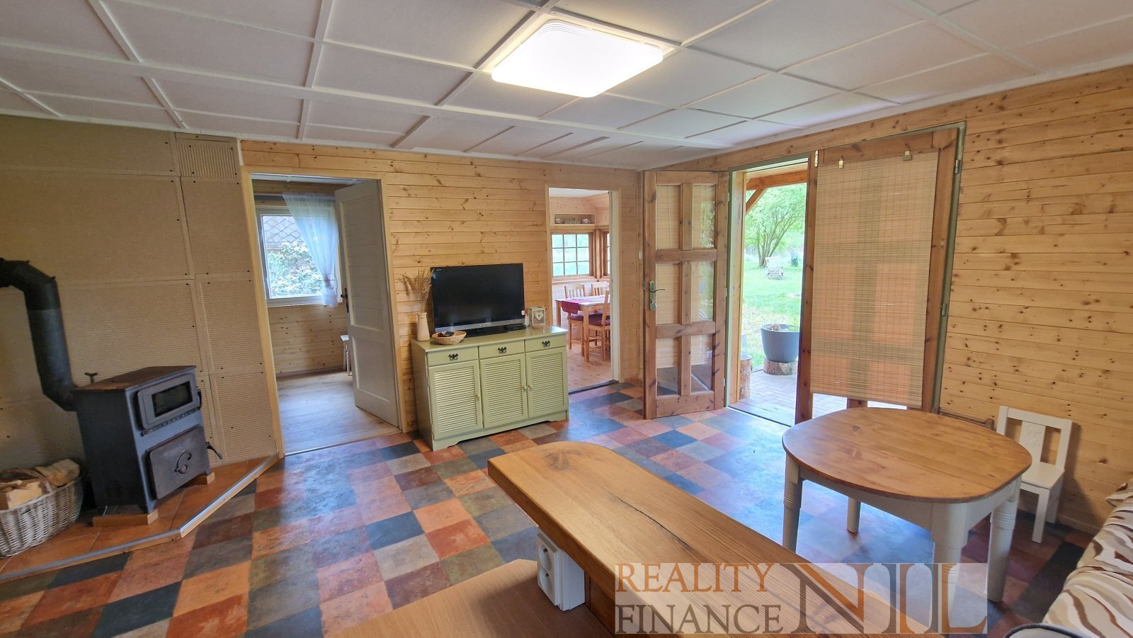 Chata má dispozici 3kk - dva pokoje - jeden se využívá jako jídelna, druhý jako ložnice, dále prostorný obývací pokoj s kuchyňským koutem (vč. elektrické varné desky, lednice a mikrovlnné trouby) , koupelna s WC a prostorem na sprchový kout. Z obývacího pokoje je výstup na terasu cca 12 m2, za domem je místnost na nářadí a zde je také bojler.