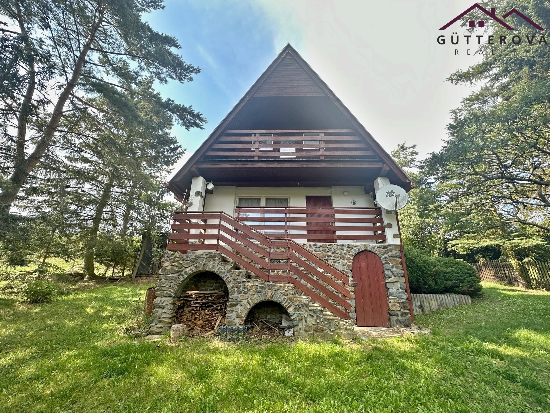 Chata z roku 1988 je umístěna na vlastním, mírně svažitém pozemku o celkové výměře 636 m2.