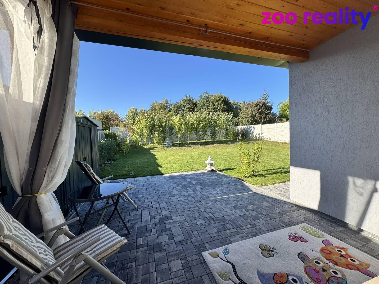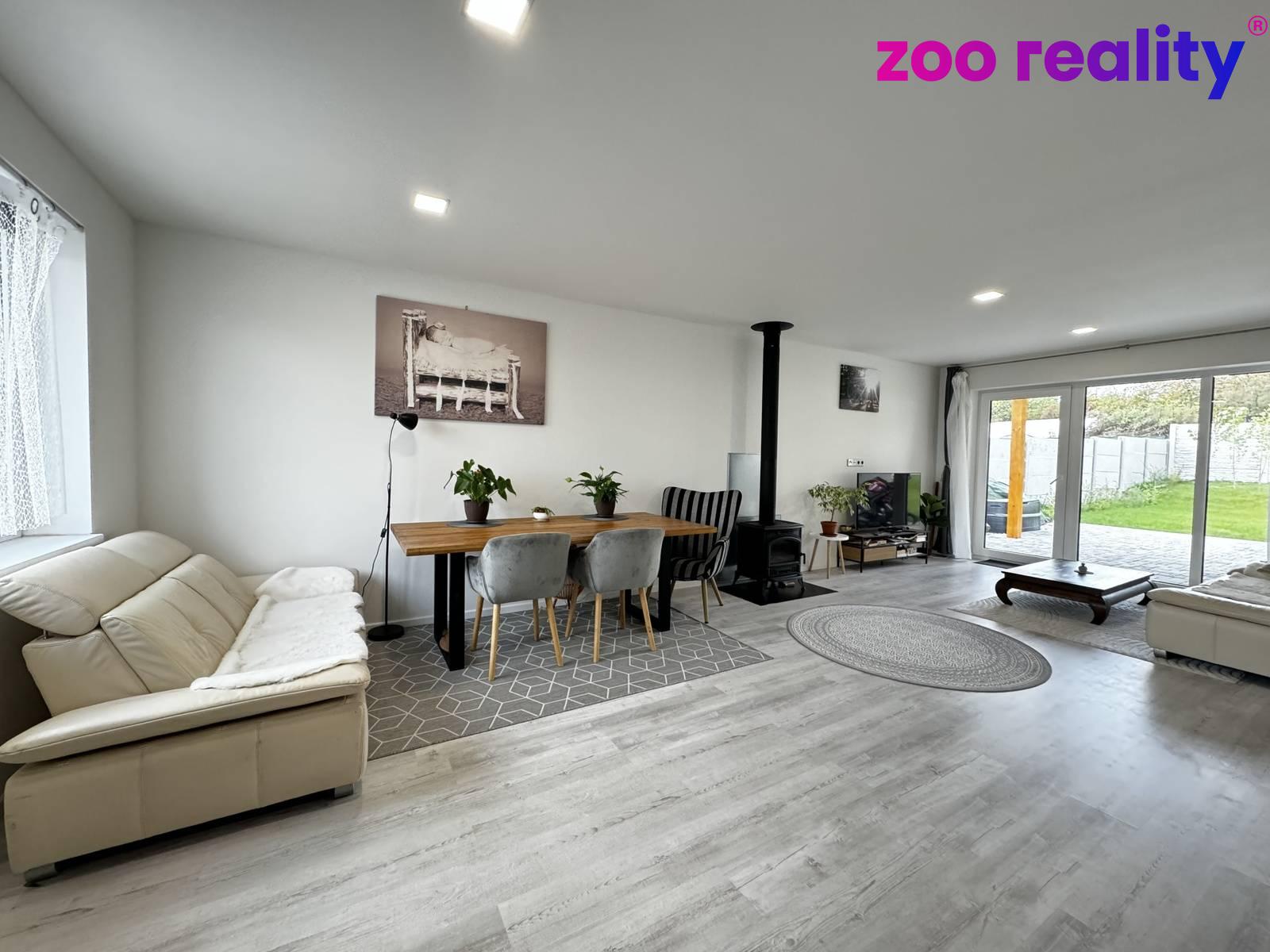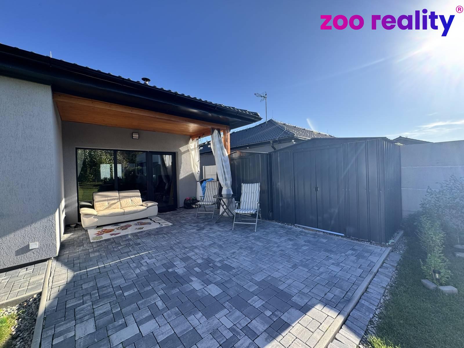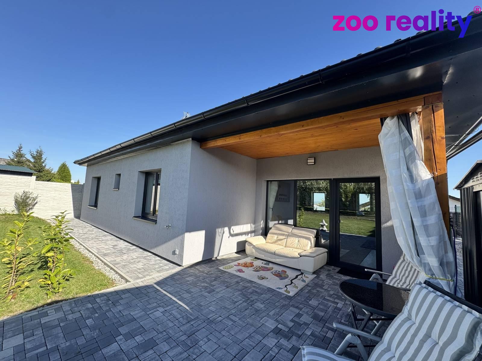 Interiér domu o užitné ploše 115 m² nabízí dostatek prostoru pro rodinné a volnočasové aktivity dětí. Najdeme zde vstupní předsíň, obývací pokoj s kuchyňským koutem a vstupem přes zastřešenou terasu na zahradu. Dále je k dispozici technická místnost, kde je prostor pro pračku a sušičku a z centrální chodby vedou dveře do třech pokojů, do koupelny, ve které nechybí vana, sprchový kout, umyvadlo ani WC a dále je k dispozici samostatná toaleta.
