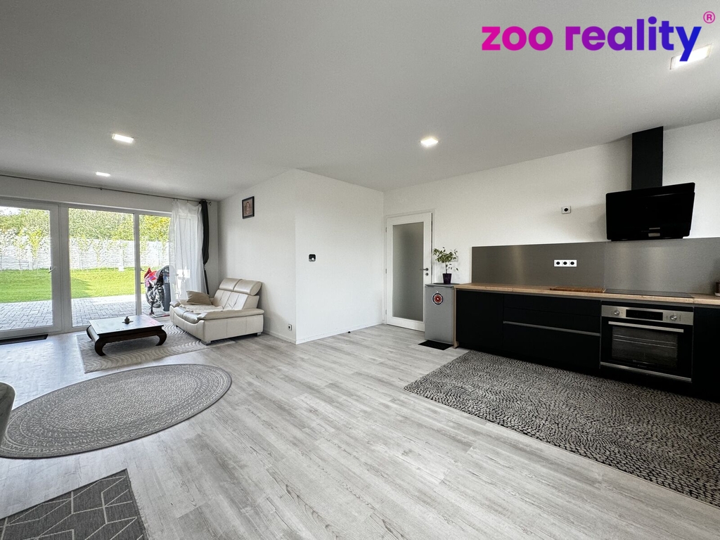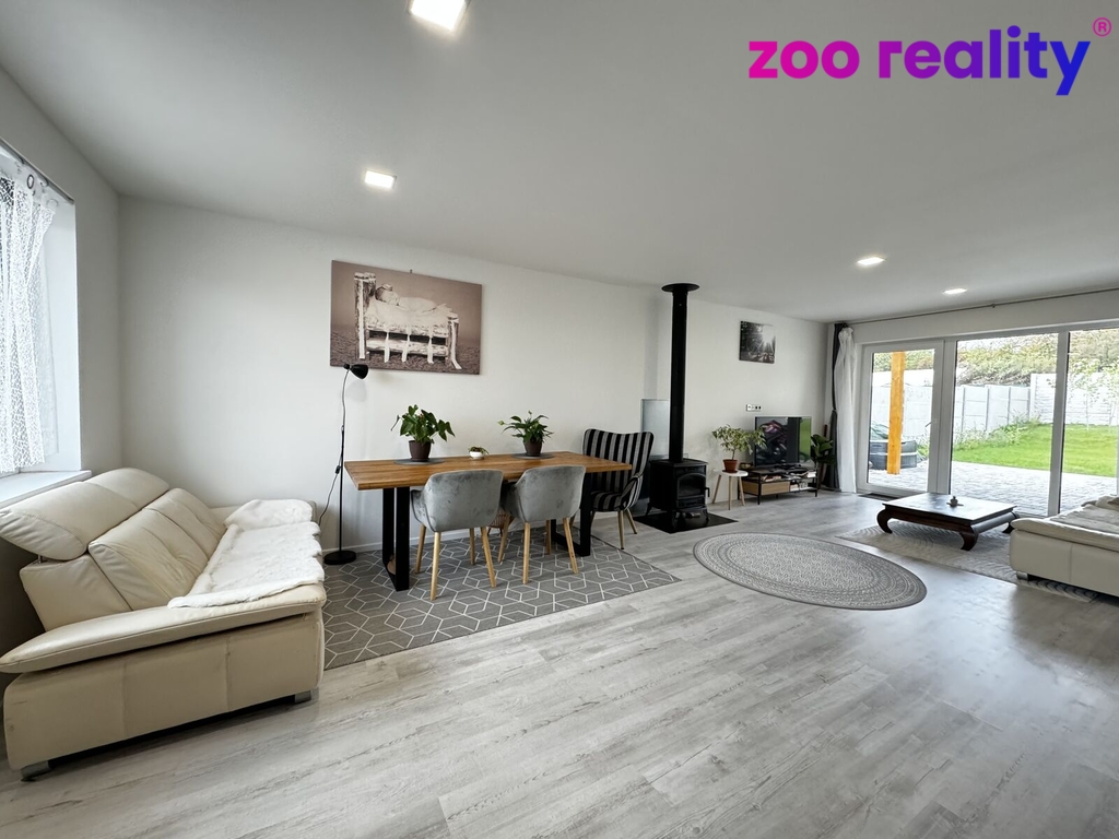 Interiér domu o užitné ploše 140 m² nabízí dostatek prostoru pro rodinné a volnočasové aktivity dětí. Najdeme zde vstupní předsíň, obývací pokoj s kuchyňským koutem a vstupem přes zastřešenou terasu na zahradu. Dále je k dispozici technická místnost, kde je prostor pro pračku a sušičku a z centrální chodby vedou dveře do třech pokojů, do koupelny, ve které nechybí vana, sprchový kout, umyvadlo ani WC a dále je k dispozici samostatná toaleta.