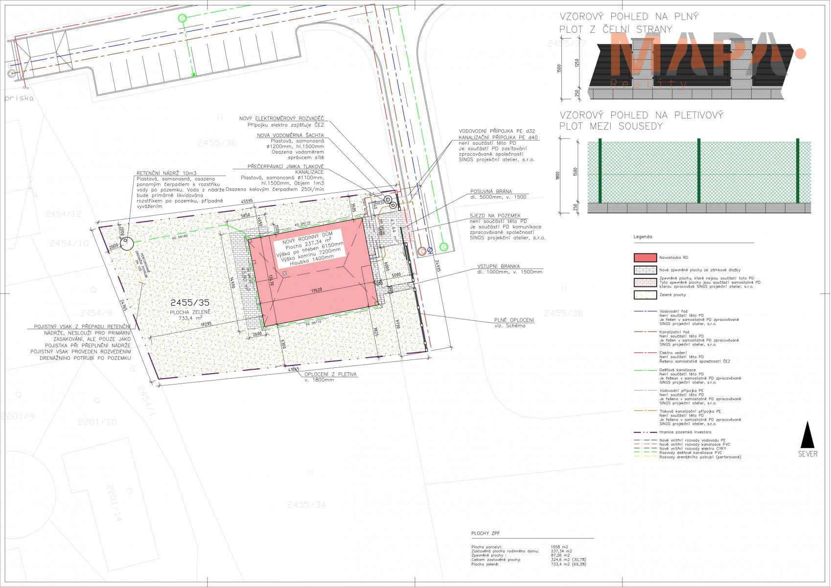 Veškeré inženýrské sítě - elektřina, voda a tlaková kanalizace jsou již připojeny na pozemek, což znamená rychlé a bezproblémové dokončení stavby.