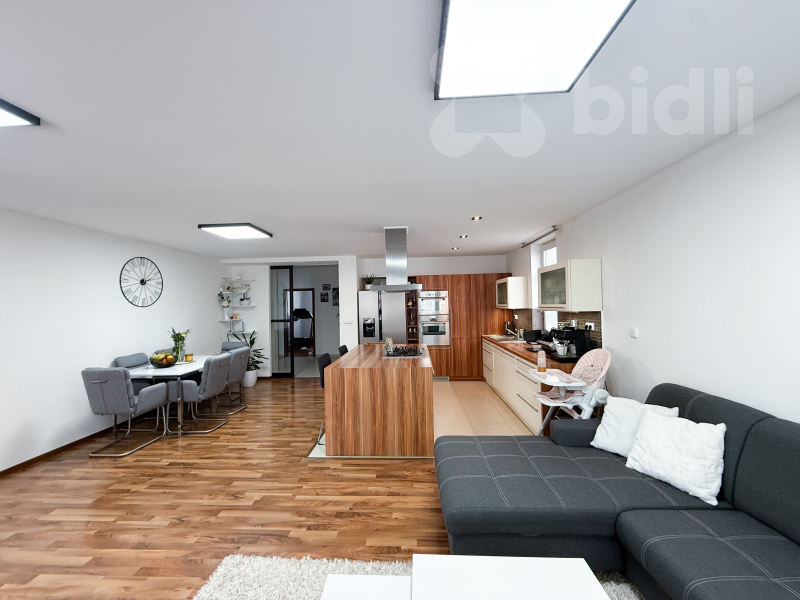 Nabízíme k pronájmu krásný a velkoryse řešený byt 4+kk o celkové ploše 116 m2, který se nachází v 1. nadzemním podlaží zděného domu v obci Černožice, ulice Revoluční 261.