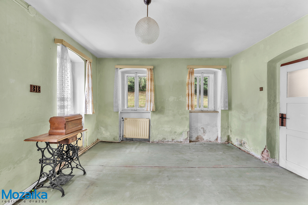 Nemovitost je v současné době neobývaná a vykazuje vlhkost zdiva, což odpovídá její nabídkové ceně. Dům je ideální pro celkovou rekonstrukci, která by mohla vytvořit jedinečné rodinné bydlení s autentickým venkovským charakterem. Alternativně je možné zvážit demolici a výstavbu zcela nového domu na tomto nádherném pozemku s potokem.