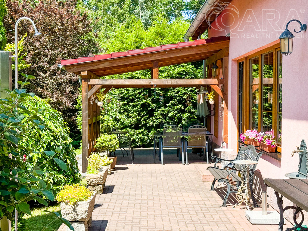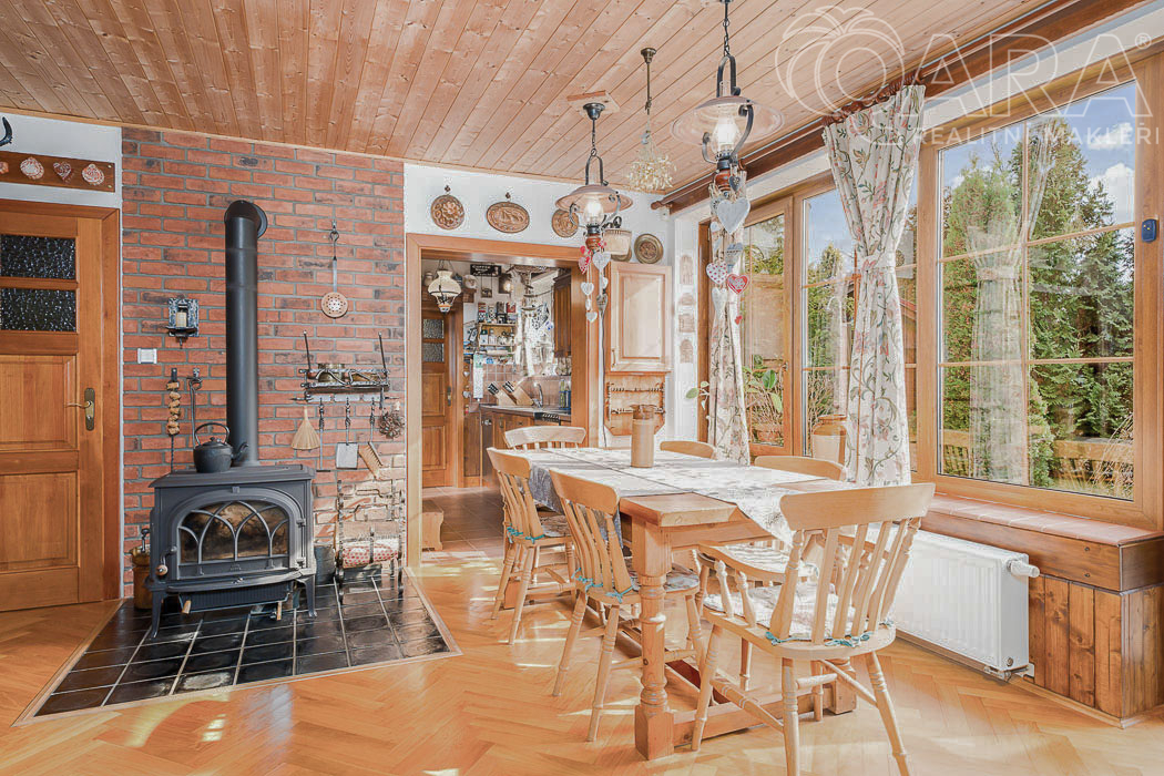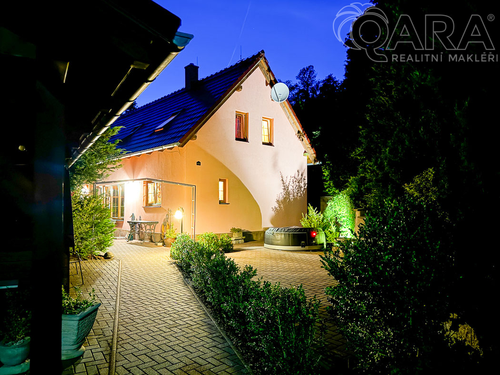 Hledáte bydlení v blízkosti přírody ? Nabízíme Vám k prodeji krásný rodinný dům o dispozici 4+kk o užitné ploše 138 m2. Tento rodinný dům se nachází v klidné části České Kamenice nedaleko Českého Švýcarska. Dům Vám nabízí krásný obývací pokoj, propojený s kuchyňskou linkou a krásným výhledem do udržované zahrady a vstupem na terasu s pergolou. Dále máte k dispozici tři ložnice, dvě koupelny, toaletu, půdní prostor, venkovní zastřešené parkovací stání, zahradní domek a dřevník. V celém domě jsou podlahy z lakovaných dubových parket a všechny stropy jsou z borovicového dřeva. K vytápění domu slouží elektrický kotel, podlahové vytápění pod dlažbou v koupelnách, na chodbě a v kuchyňské části. Určitě oceníte i vytápění v litinových krbových kamnech od značky Jotul. K dispozici máte krásnou, udržovanou zahradu o celkové ploše 799 m2, která Vám nabízí dostatek soukromí s převážně stále zelenými keři a stromy. K parkování Vám poslouží stání pod dřevěným přístřeškem. Město Česká Kamenice Vám nabízí krásnou přírodu, procházky, obchody, restaurace, školy, školky. Domluvte si prohlídku a přijďte se sami přesvědčit o jedinečnosti tohoto místa.