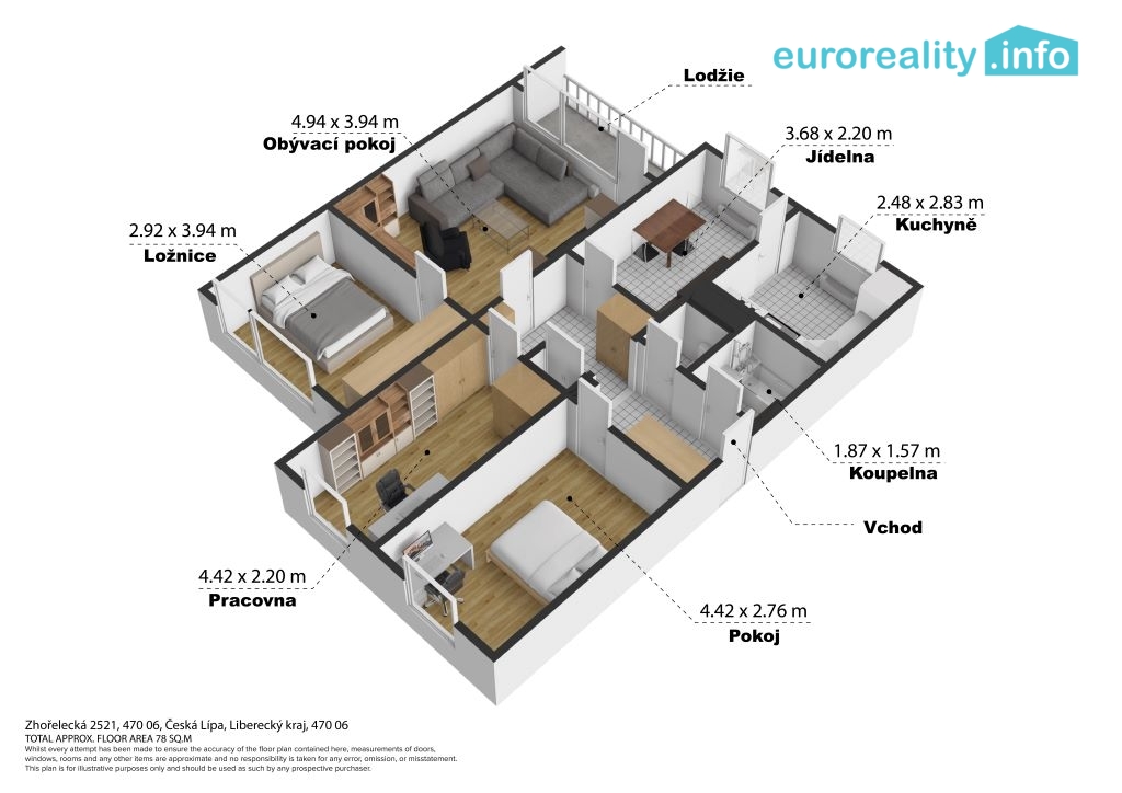 Nabízíme k prodeji prostorný byt o dispozici 5+1 v České Lípě, ulice Zhořelecká, situovaný v 1. patře zatepleného panelového domu. Bytová jednotka má užitnou plochu 86 m² a disponuje zasklenou lodžií o velikosti 4,8 m². Součástí je také sklepní kóje v suterénu domu (2,2 m²).