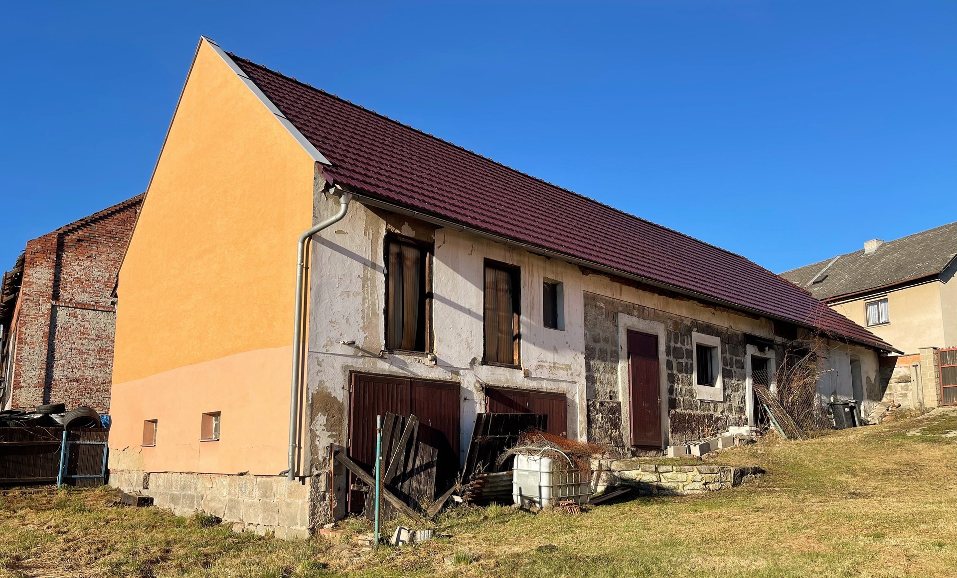 Zemědělská doplňková stavba je dělaná na několik částí se samostatnými vstupy, částečně podsklepeno, s novou sedlovou střechou včetně krovu.