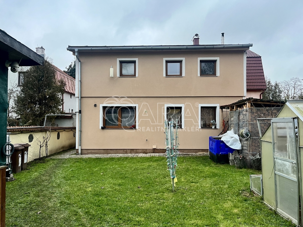 Součástí nemovitosti je oplocená zahrada s travnatou plochou, skleníkem, dřevníkem a prostorem pro skladování. Dostatek místa pro odpočinek, domácí mazlíčky nebo rodinné posezení.