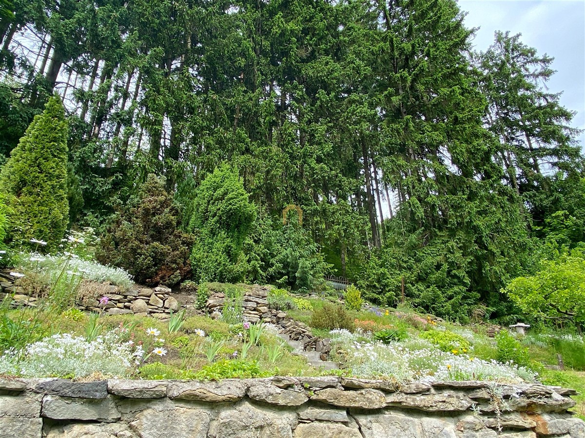 Na rovinatý pozemek kolem domu navazuje svažitá, terasovitě upravená zahrada osázená trvalkami i ovocnými stromy, v horní části zahrady je příjemné posezení s ohništěm. K dispozici je úložný prostor (kůlna) na nářadí a techniku.