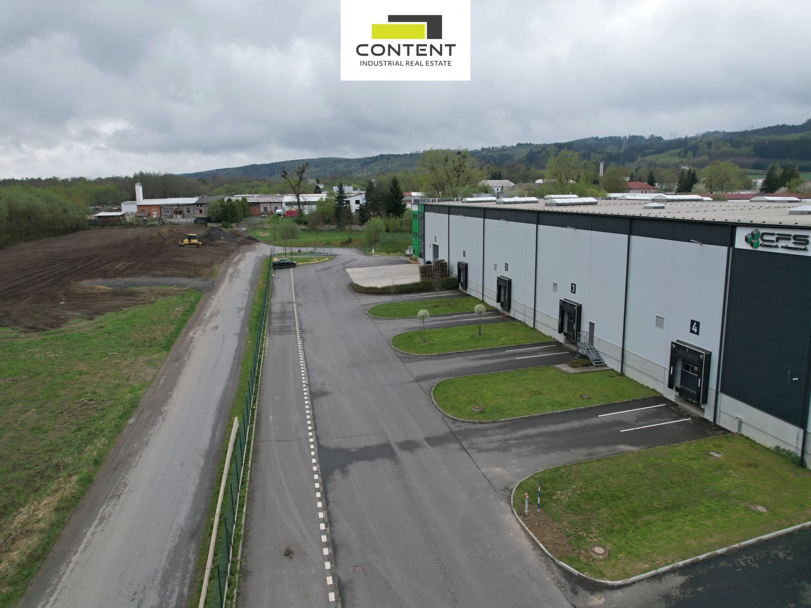 - příjezd pro TIR, parkovací plochy,