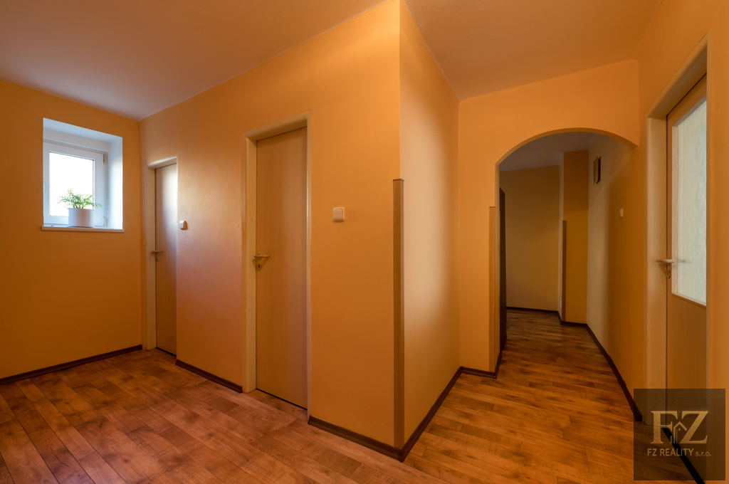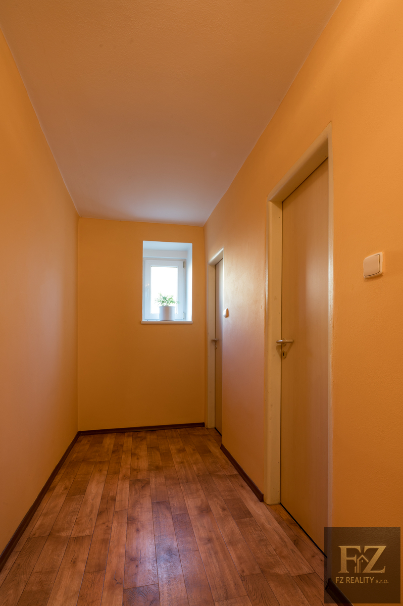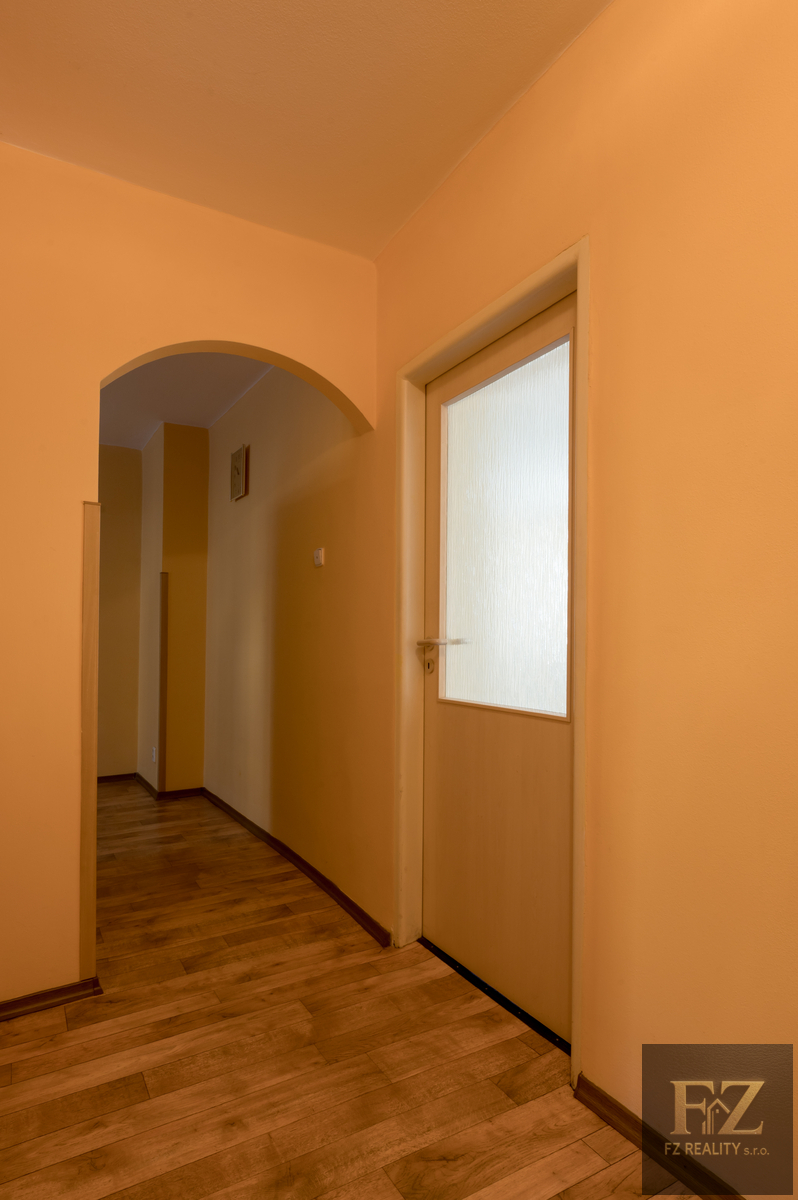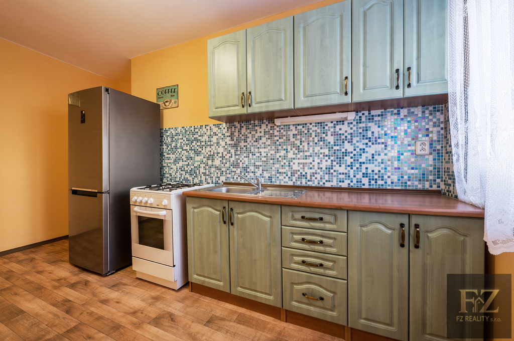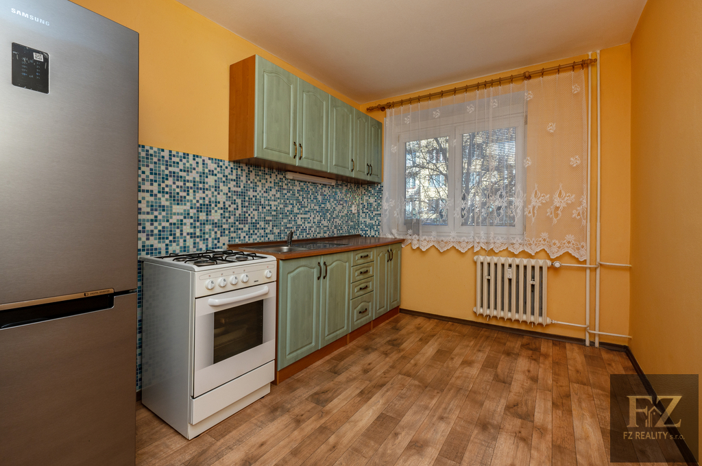 Po vstupu do bytu vás přivítá prostorná předsíň, ze které je vstup do koupelny s vanou a pračkou a také na samostatné WC. Dále se z předsíně vstupuje do obývacího pokoje, na který navazuje další pokoj. Samostatná kuchyň je vybavena plynovým sporákem, lednicí a jídelním koutem.