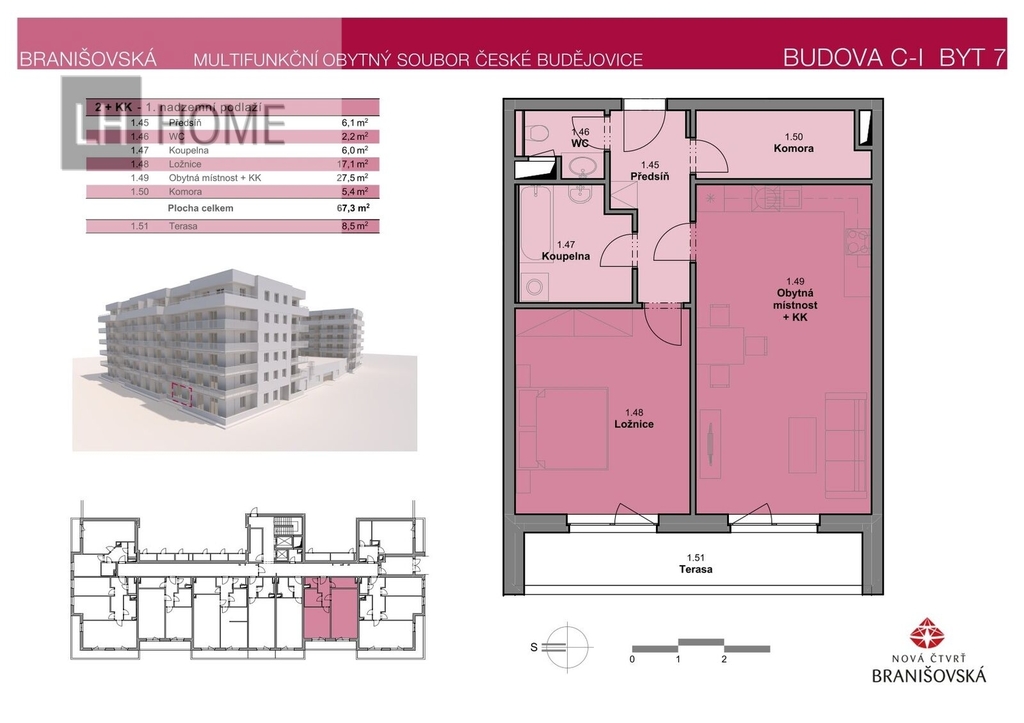 Nabízíme moderní byt 2+kk (67,30 m²) s balkonem (8,50 m²) ve vyhledávaném projektu Nová čtvrť Branišovská, České Budějovice.