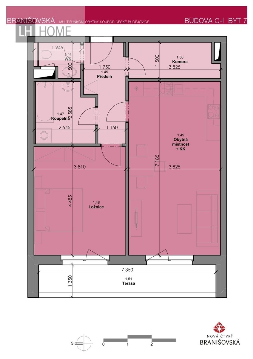 Bytová jednotka 2+kk (67,30 m²) s balkonem (8,50 m²)