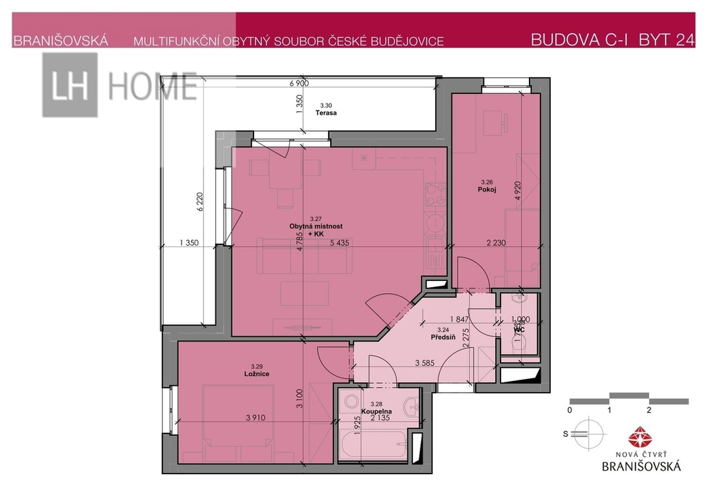 Byt se nachází ve 3. patře novostavby. Díky promyšlené dispozici nabízí pohodlné bydlení pro jednotlivce, páry i rodiny.