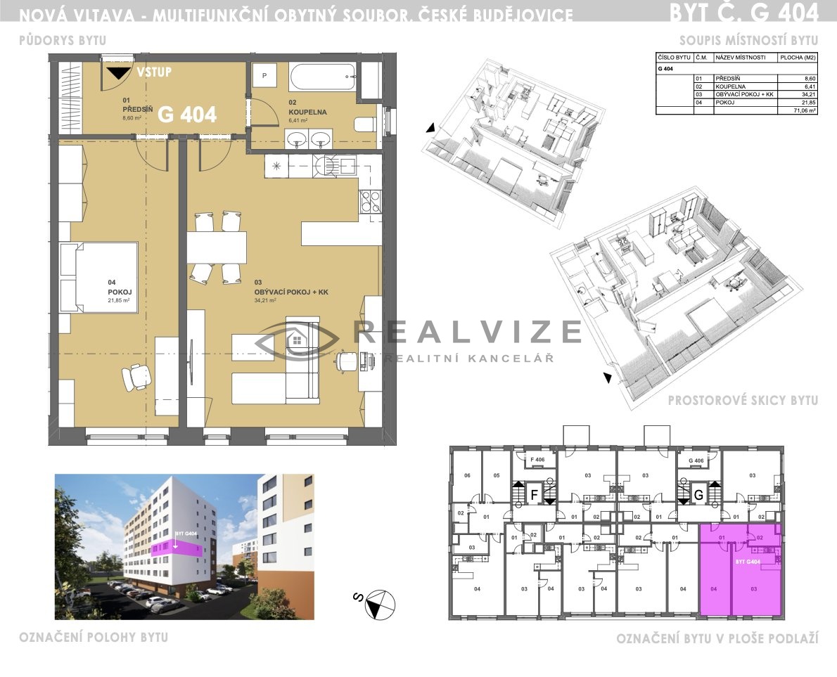 Nabízíme k prodeji bytovou jednotku o dispozici 2+kk a celkové ploše 71 m², která se nachází v moderním bytovém domě v oblíbené lokalitě Nová Vltava v Českých Budějovicích, v blízkosti Vrbenských rybníků a nákupního centra Géčko. Bydlení v projektu Nová Vltava patří dlouhodobě mezi velmi žádané díky kvalitnímu provedení stavby a vyšším standardům bydlení.