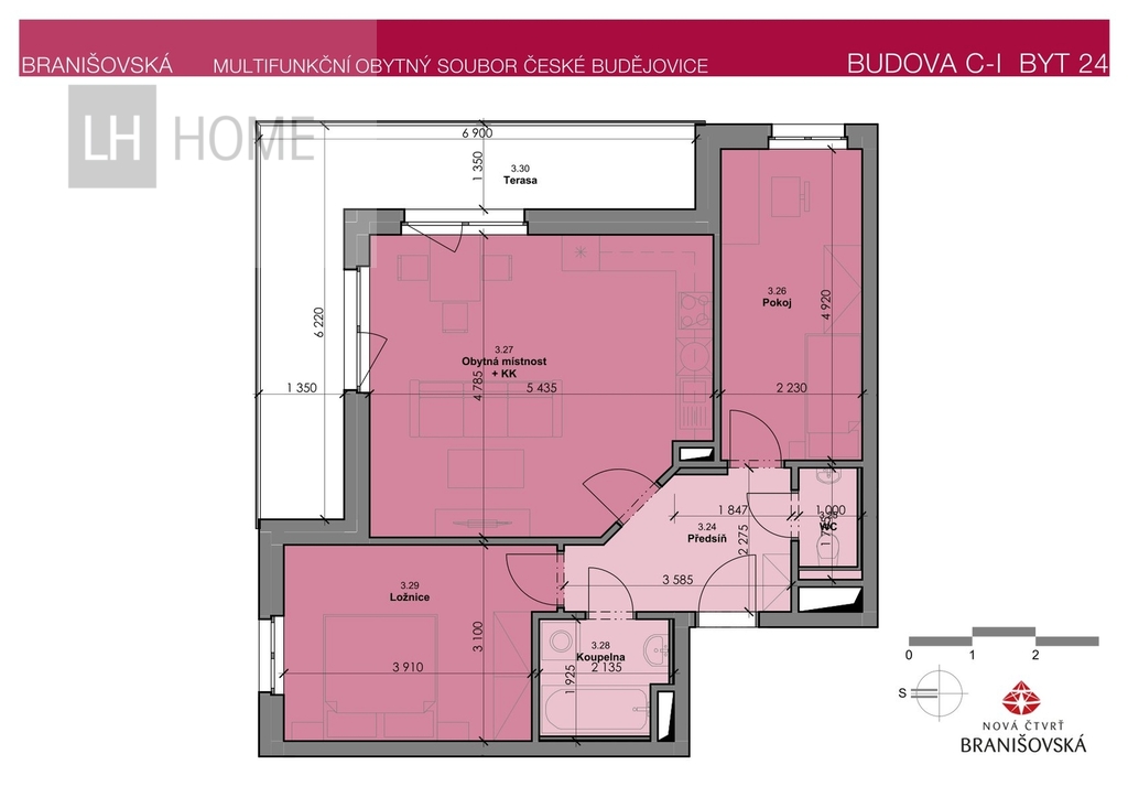 Moderní byt 3+kk (62 m²) s terasou (15,90 m²) – Nová čtvrť Branišovská, České Budějovice