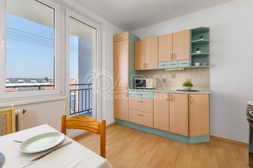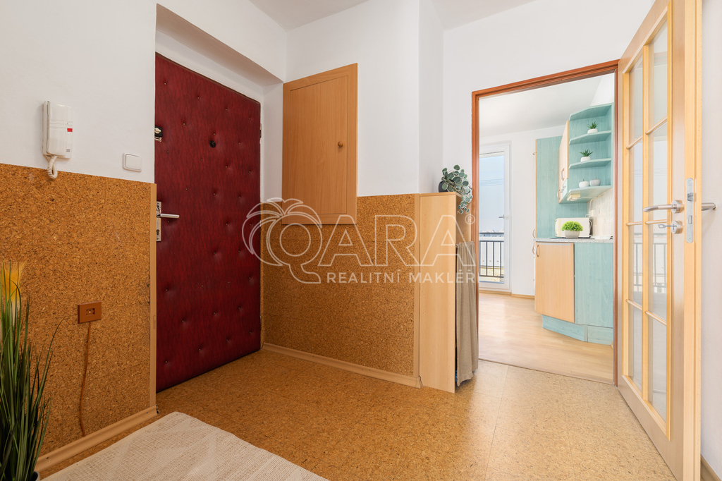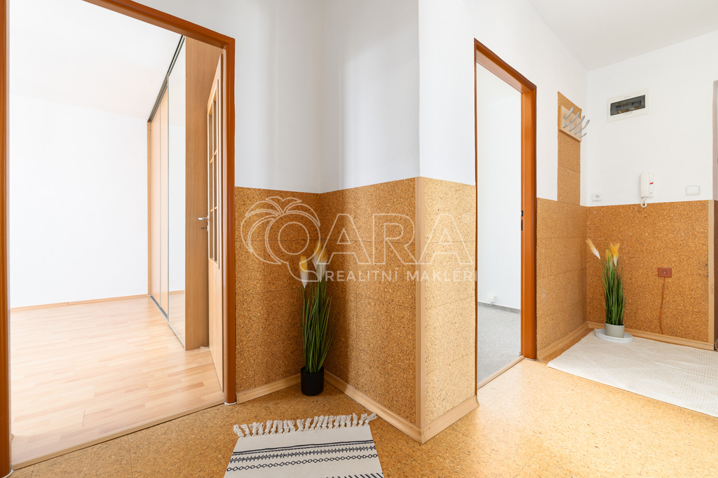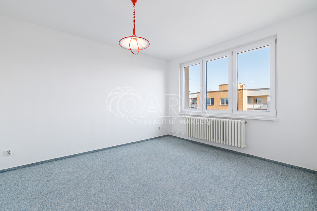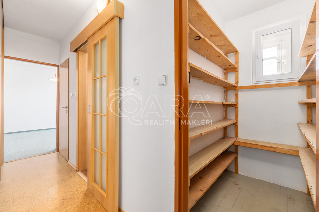 Dispozice bytu je řešena velmi prakticky a nabízí vstupní předsíň, samostatnou kuchyni, prostorný obývací pokoj, dvě ložnice, koupelnu, samostatné WC a praktickou spíž, která poskytuje další úložný prostor. Díky velikosti a rozložení místností působí byt vzdušně a nabízí dostatek prostoru pro pohodlné rodinné bydlení.