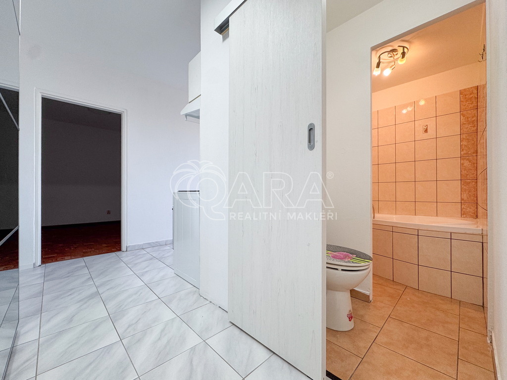 Byt je po částečné rekonstrukci a disponuje vstupní chodbou, koupelnou s WC, kuchyní s jídelním koutem, obývacím pokojem a ložnicí. K bytu náleží balkon a sklepní kóje. Dům je zateplený, má vyměněná okna, výtah a je vybaven kolárnou. Byt je ideální pro jednotlivce, pár nebo studenta, kteří ocení dostupnou lokalitu a pohodlné bydlení.