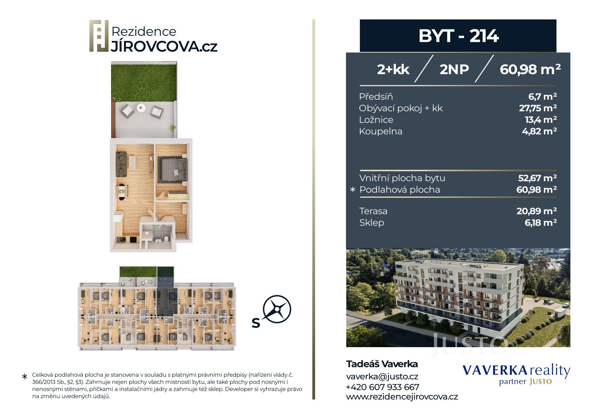 Tento byt číslo 214, o dispozici 2+kk se nachází v 2. nadzemním podlaží.